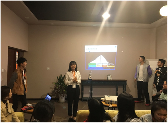 2017年10月11日下午四点,在重庆邮电大学移通学院行政C楼咖啡厅,为促进学生干部交流沟通,提高团队凝聚力,学生处心理健康服务中心举办了第一期干部交流会,心理咨询教师田雨老师、樊春燕老师、晴天心理站与阳光心理工作室成员共计39人参与了本次活动。在“让青春在交流中绽放”的主旋律下,所有成员们度过了近两个小时的轻松、愉悦时光,参与的成员们都对部门和心理学等方面有了更深的理解。