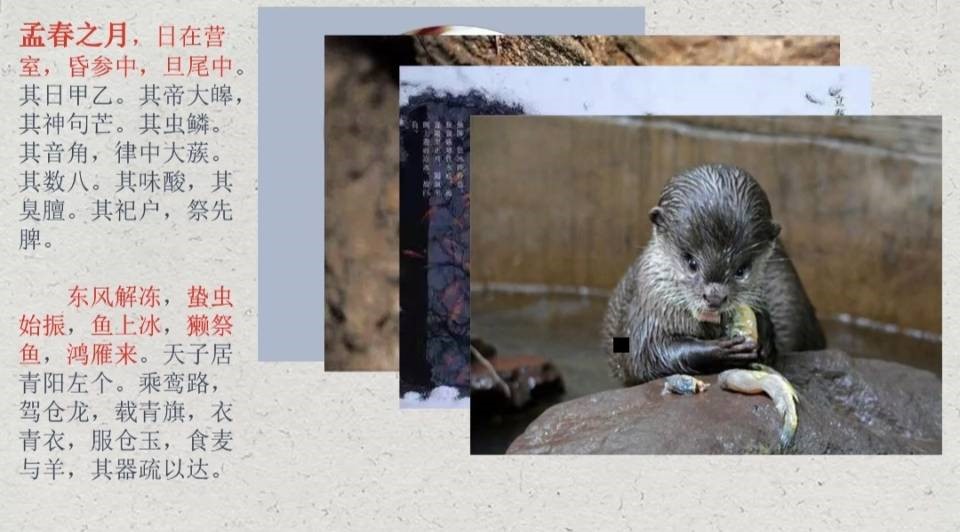 接着徐老师为同学们讲解了《月令》中记载的包括孟春之月的“东风解冻”、季夏之月的“腐草为萤”等内容。这些时令知识对于大多数同学来讲都是格外新奇的,所以即使只是线上学习,同学们也都非常积极的与老师进行互动,提出自己的疑问,徐老师也耐心的为大家进行了详细的讲解。徐老师还就《月令》中记载的物候与时间具体是什么意思为大家进行了讲解,比如《月令》中记载的“濑祭鱼”其实就是“水濑吃鱼”的意思,只是人们将它人像化了,这反映出来的物候信息是鱼汛期的到来。这些话题成功的填补了同学们的对于时令知识的空白面,让大家对时令有了基础的认识。