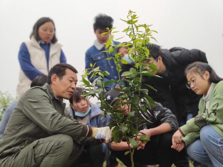 为提升大学生劳动素养,培养扎实理论基础与劳动技能,让同学们学习丰富的农耕知识,此次基地寻访邀请到植物保护专家李老师为同学们现场讲演柑橘的种植养护。活动过程中,李老师通过现场动手演示并解释着重强调“一干三枝”的重要性,同时老师也总结到“学海无涯,当你去钻研学习农业知识的时候,就会发现他其实没有看起来的那么容易,里面的学问也需要同学们去发现、探索、实践”。学习了柑橘果树养护的知识后,同学们也纷纷拿上工具,通过挖土、施肥、填埋、修枝等方式去感受柑橘树的生长,同学们将理论融于实践,那一个个忙碌的身影,是这田间最亮丽的风景。