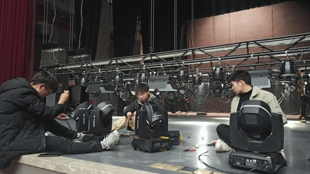 在接下来的时间里,他们一起讨论灯位,根据每一个节奏,音乐的起承转合去设计灯光的颜色、转换速度、角度等等,在5分20秒的音乐里,一个几秒钟的片段细节动辄就要花上几个小时去反复调整修改,甚至推翻设计思路重新来过,累了,技术骨干顶上,技术骨干累了技术组长顶上,就这样,他们每天都忙碌到凌晨。