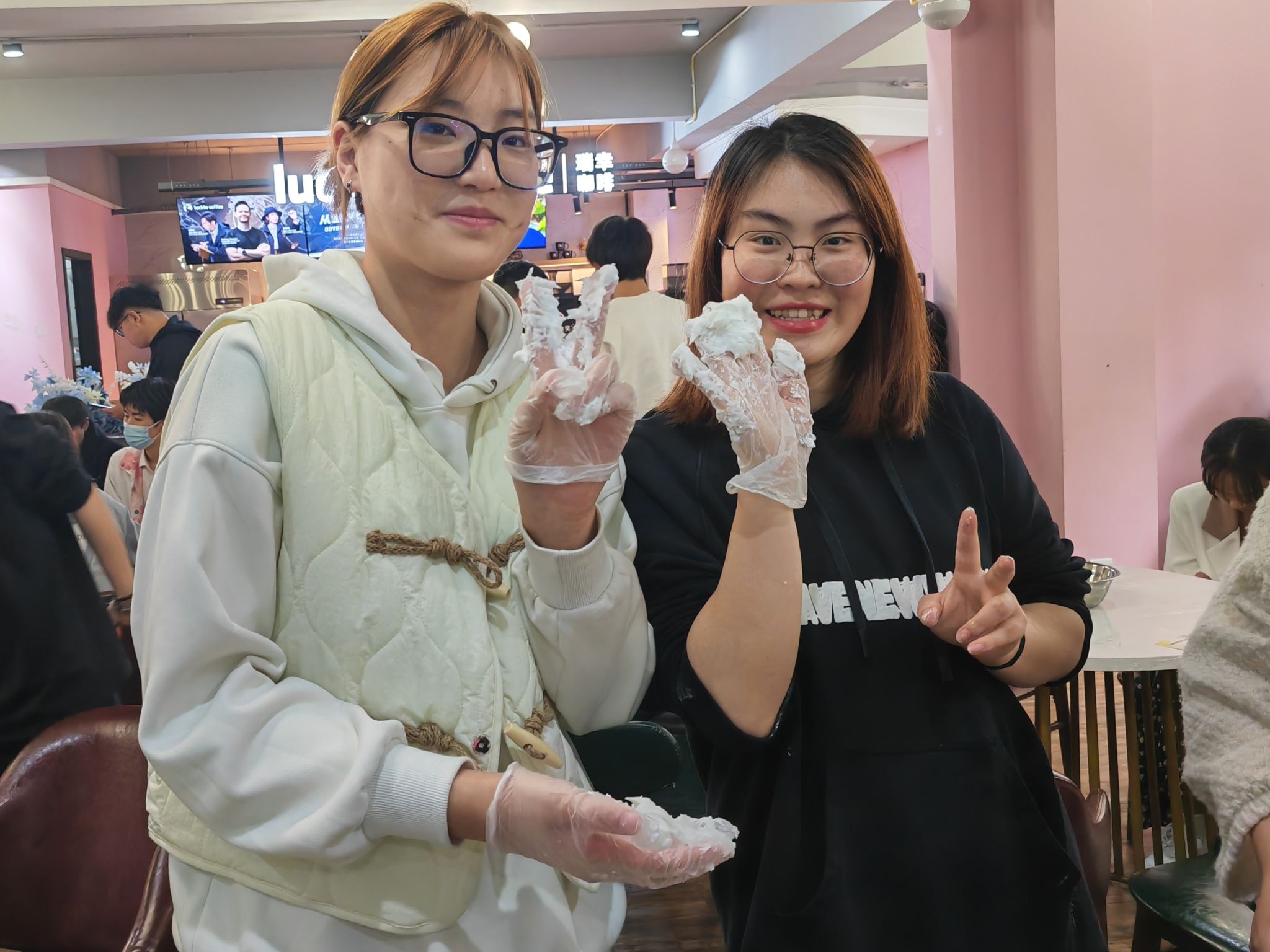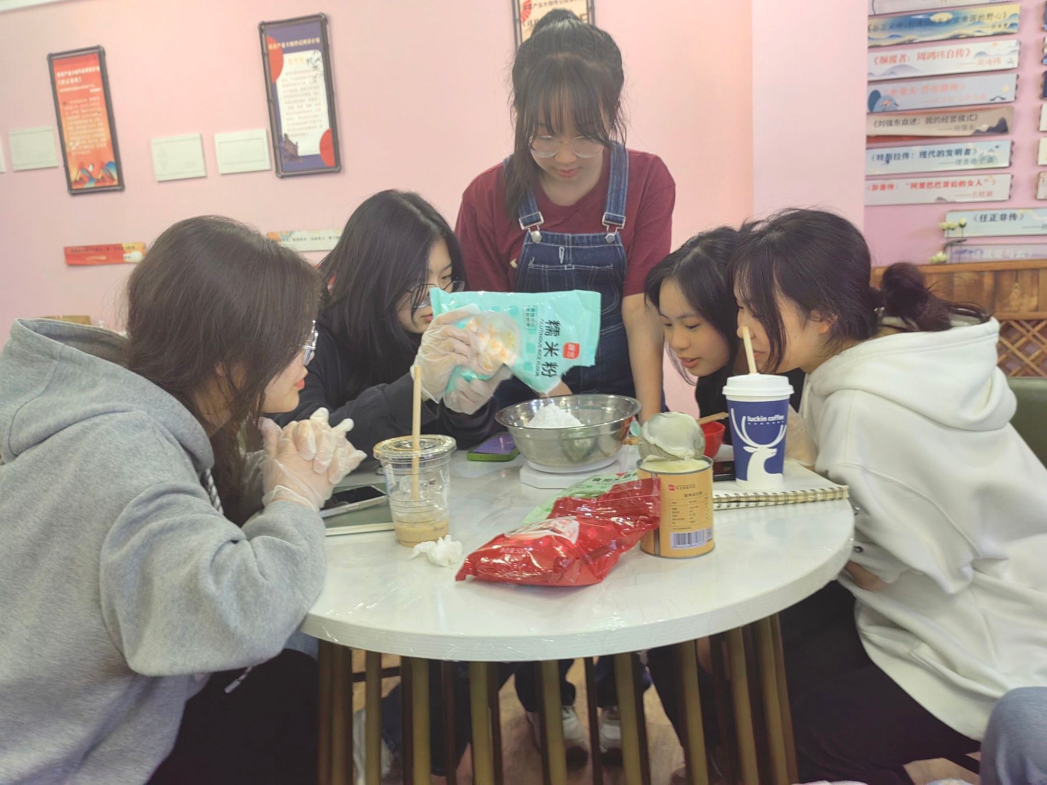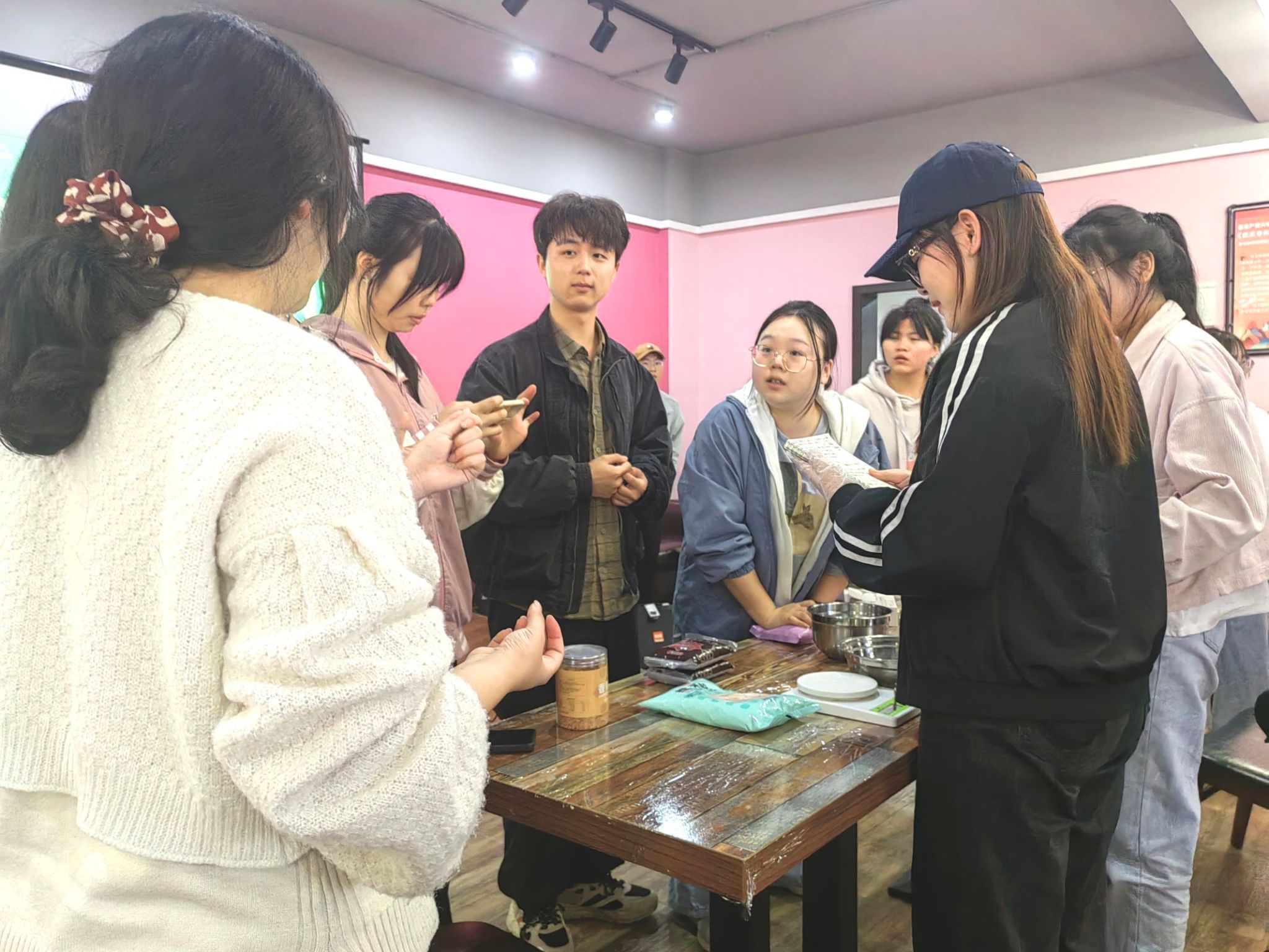 在制作青团形状时,部分同学也发挥自己的创意制作出了形态各异的外形。在包青团的时候,根据现场提供的馅料,同学们大开脑洞,奶油+咸蛋黄、巧克力+肉松、油辣子+芝士.....各种奇妙的搭配被包进青团里。一枚小小的青团,不过手掌之大,浓缩的却是同学们对中华传统节日的传承,大家在欢声笑语中沉浸式体会传统节日带来的乐趣,拉进了彼此之间的距离。