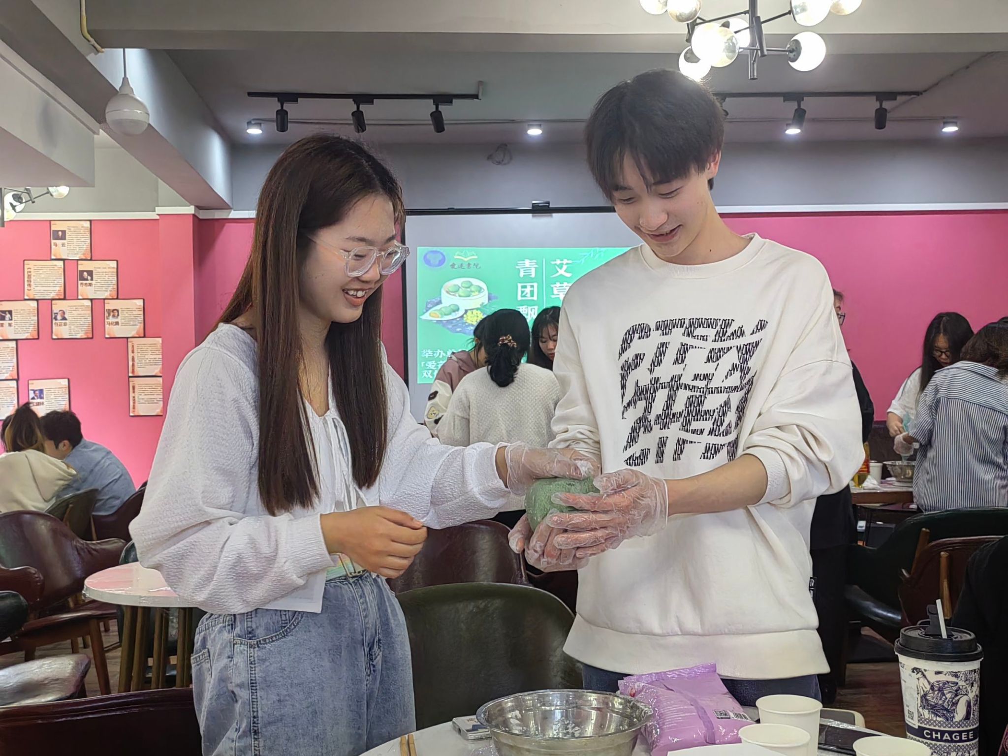 《岁时百问》说:“万物生长,此时皆清洁而明净,故谓之清明。”清明节是我国的二十四节气之一,而青团是江南人家在清明节吃的一道传统点心,始于唐代,至今已有1000多年的历史。为了传承中国传统文化,学习制作传统美食,进一步打造爱莲温馨“家文化”氛围。爱莲书院联动千禾烘焙工坊与重庆合川区拾壹烘培工作室,于2023年4月7日在爱莲书院音乐咖啡厅举办“艾草悠悠,青团飘香”家乐活动。