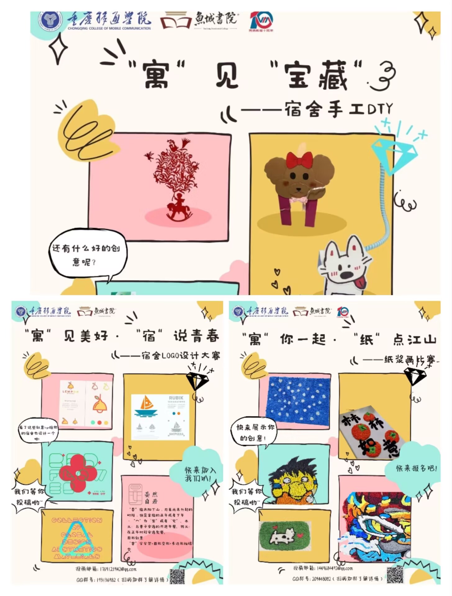 疫情袭来,宿舍成为同学们学习生活、朝夕相处的温暖港湾。为进一步丰富书院学子宿舍文化生活,深化寝室文化生活内涵,营造书院“家文化”氛围。鱼城书院于11月16日-11月21日以线上形式开展了“寝”之所起 一往而深——鱼城“家”文化周特别活动,通过“宿舍手工diy”“宿舍LOGO设计大赛”“纸浆画制作”等活动,鼓励同学们通过发散性思维,结合主题开动脑筋,用照片、视频、手工等形式,记录积极乐观的“封校”生活,缓解情绪压力,展现自己寝室的独特风采,为抗疫贡献自己的青春力量,诠释青春担当。