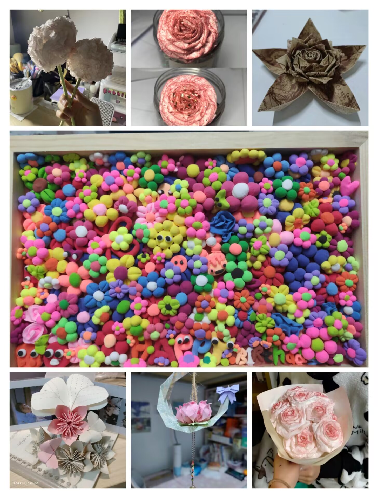 微光终可成星海。突如其来的疫情,给移通的热闹按下了暂停键,老师们身着“志愿红”“防护蓝”“天使白”,以无畏的姿态为移通每一个学子筑起了一道温暖而又坚固的城墙。为感谢防疫工作者的辛勤付出,进一步培养同学们实践操作能力,养成耐心、细致、开拓的内在品质。鱼城书院于11月16日-18日开展了“宿舍手工DIY”线上征集活动。本次活动共收到815件作品,同学们以“艺”战疫,以画为援,用双手和想象力带来了充满温情与力量、精美又别致的作品,记录了当下的感动。有用口罩拼扎成的手工花朵,有废物利用制作的宿舍萌宠,还有制作精美的折纸玫瑰、剪纸画等,丰富多样、各具特色。通过手工制作,有效缓解了书院学子当下因疫情带来的焦虑等不良情绪,充分表达了同学们对校园防疫工作者的敬意,展示了移通学子抗疫必胜的信念和对疫情散尽、师生团聚的美好期待。