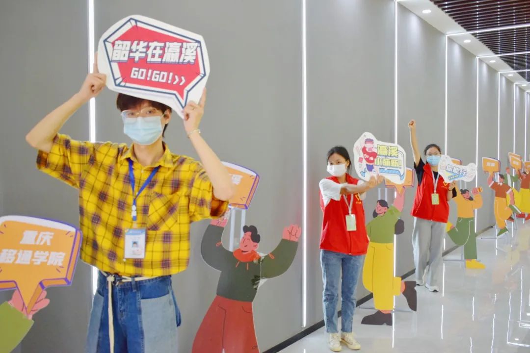迎新期间,綦河书院的老师们带着书院文创周边,去问候了入住的新生,和她们小谈家常,询问新生是否遇到困难,书院老师们积极帮忙解决,以便于她们更好适应书院生活。除了面对面地给新生送去綦河书院的家温暖,书院为了迎接新生,也将内外好好的装饰了一遍,用最热烈的色彩去欢迎最可爱的萌新。花街的大墙焕然一新,飘舞的彩旗和贴心的标语,重新注入专属于綦河书院的“故事力与家文化”活力。