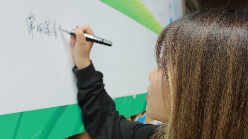 同学们执笔,在信的下方,留下他们的痕迹,同学们和自己的名字、伙伴的名字合影,留下最青春洋溢的笑。远景的孩子从来不是孤立的个体,而是一个个有趣自由的灵魂,共同栖息在这片生机盎然的土地上。