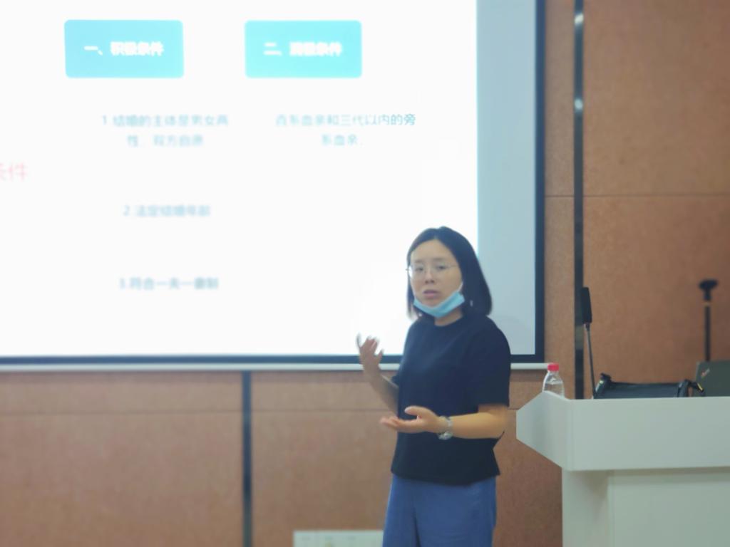 在活动结束前,李老师解答了学生们关于婚前财产与婚后财产的区别、房产加名是否有用、婚姻存续期间丈夫死亡而还未出生的孩子是否享有继承权等问题。解答完同学们的困惑后她告诉大家“只讲爱情的浪漫、婚姻的平等当然简单,但是生活总有意外,你们想要了解更多现实的问题,那从专业的角度回应你们的诉求就是我作为法律实务研习项目导师最应该做的。”