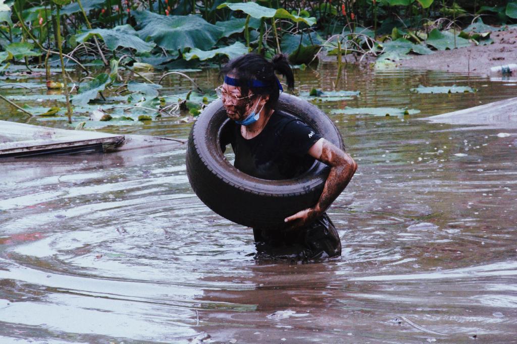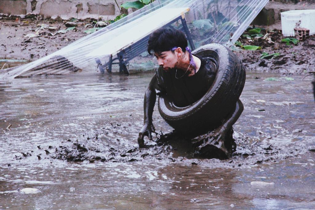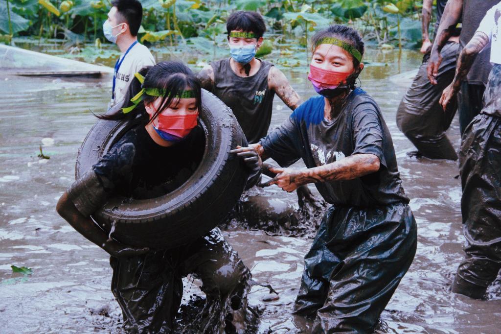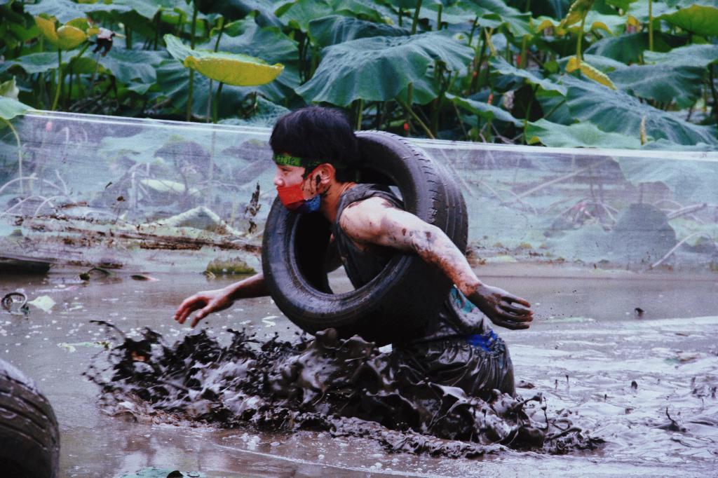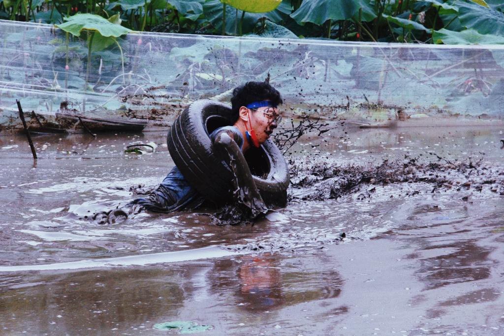 踏在泥上,肩扛重物,泥地里扛着轮胎前进真的好累,但是一个团队都在努力加快速度的时候真的好燃。那一刻我心里想的是我一定要走,我也必须得走,脚陷在泥里出不来,轮胎压的肩膀生疼,我咬起牙,狠下心,终于走向了终点。那一刻,我是兴奋的,是激昂的,感觉已经站在了人生巅峰!