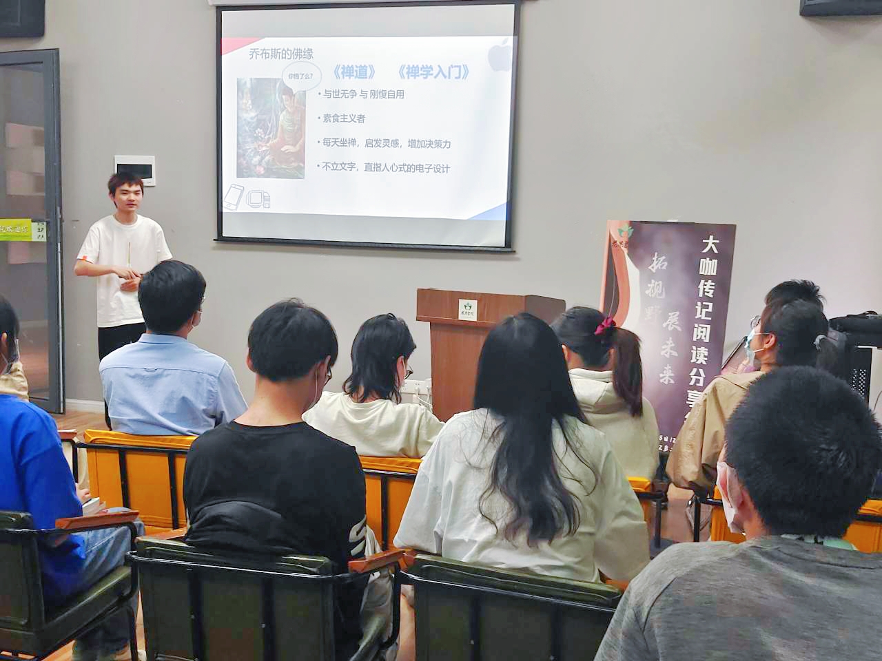 为积极响应“信息产业大咖传记”阅读计划,鼓励同学们乐思好学广泛阅读,营造良好的阅读氛围,花果书院于2022年4月28日 12:00在花果书院多功能活动室开展以“拓视野.展未来”为主题的二届一任花果书院学生自治委员会信息产业大咖传记阅读分享会,引导同学们在阅读中探索商科思维,启发学习、生活,尽快找到自我定位并对未来做出合理规划。