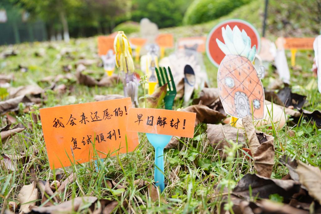 图书馆小广场旁的草坪上诞生了一个新的打卡景点——“书院祝福小镇”,书院师生利用手边的一次性餐具、再利用材料绘制自己的专属小涂鸦,一系列的小涂鸦上有来自每一个书院学子最诚挚的祝福,在我们上下课每日经过却又不起眼的角落,默默地带来鼓励与快乐。小镇搭建至今已有百余个师生制作的作品,涵盖了全部由学生亲手手绘完成的所有书院建筑,倾注了学生对学校的情感,赋予温度,累计在重庆移通学院官方视频号点赞量104次,官方抖音点赞量169次,官方微信阅读量1676次,如今小镇的“居民”仍在增多,故事仍在继续上演。