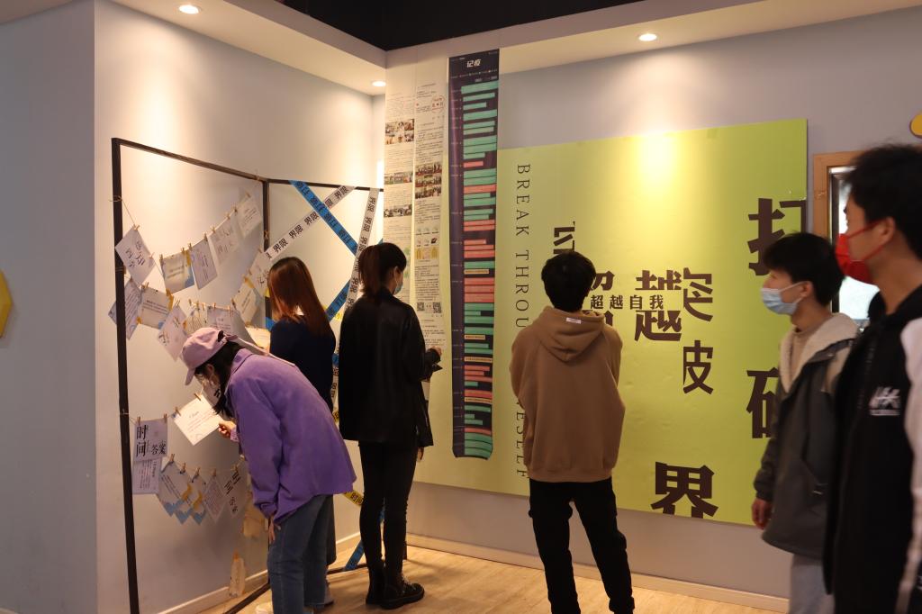 我觉得汇江书院此次的布展很新颖,也很有意思。既用文字体现了大家精彩的故事,也用空间诠释了“打破界限”的主题,有很多同学都在这里交流、拍照。