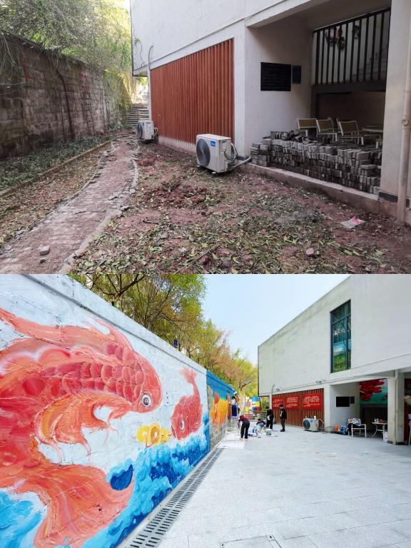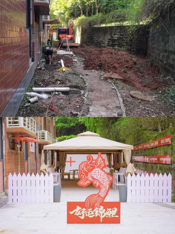 2021年10月启动书院空间提档升级工作以来,鱼城书院教师团队与学生团队针对书院墙体潮湿、后花园多蚊虫等实际问题,对鱼城书院进行了现场走访,制定了空间改造方案,并逐一实施推进。