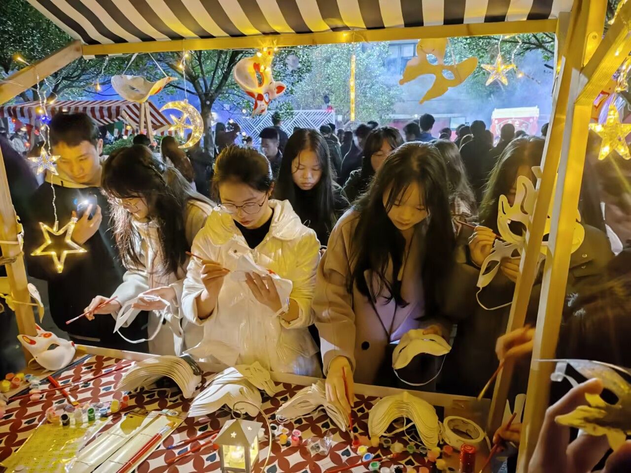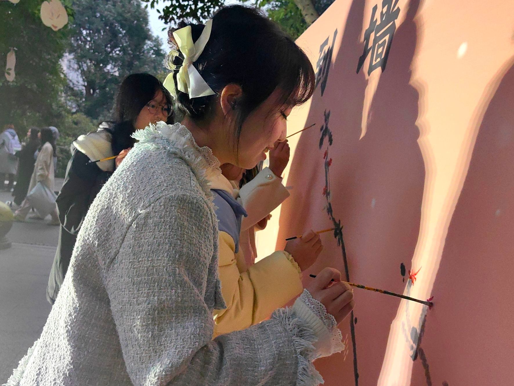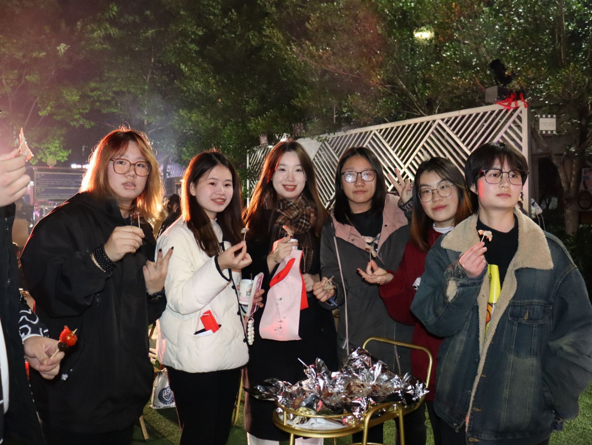 美食集市上,当走近集市工作人员会细心向同学们讲解其传统内涵的美以及文化的渊源,同学们可以亲自体验摊主角色,体验中国摊边文化,在体验劳动的乐趣中享受别具一格的生活体验,享用来自中国独有的年味味觉盛宴。冰糖葫芦感受裹上浓浓糖浆的乐趣,定格下甜美的时刻。步步糕升通过传统的飞花令赢得中式糕点,在诗词的碰撞中,感受传统文化魅力。在上上签中,校园里记录下同学们每一个美好幸福的祝福,使每位参与者都能在沉浸式的体验中感受温暖、热情与仪式感,在每一个细节中感受到中国传统文化的魅力。