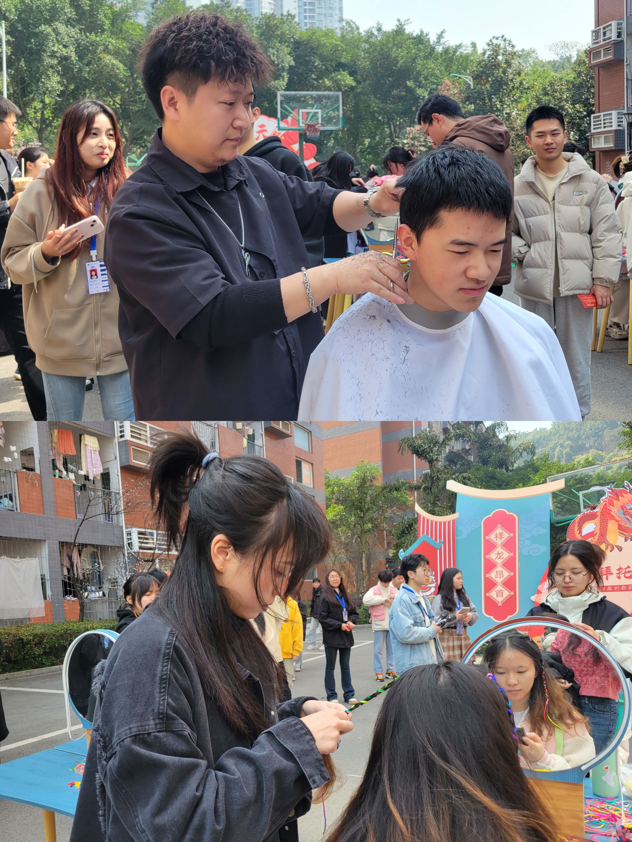 自古以来,“二月二”便有“剃龙头”的传统习俗,期盼新的一年都有精神头,为传承传统文化,创新传承传统民俗,别都书院特别邀请校外专业理发师和校内华韵汉服社倾情助力,重点打造“剃龙头”环节,参与同学现场体验理发、编发,通过传统民俗的体验,怀揣对师长、好友以及未来的美好祝愿,传承与弘扬传统文化,守正与创新传统文化的新时代活力。此外,别都书院将“龙抬头”传统项目,与学生当下喜欢的“Emoji表情猜猜猜”相结合,创新打造“猜龙年”限定版活动,通过猜出龙年表情组成的词语这一种有胜负感的活动,让大家在生活、学习之余可以读懂生活、挑战自己。