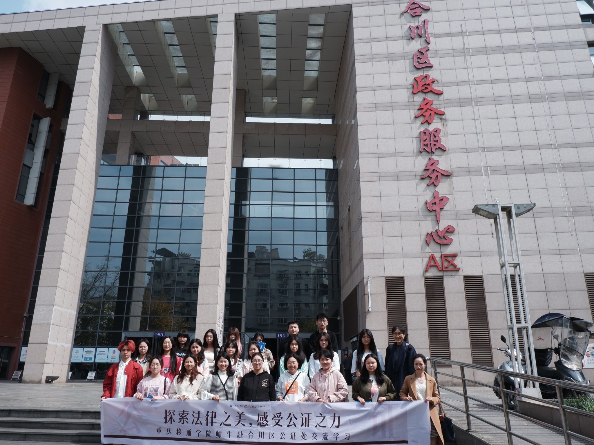 4月11日下午,新商科教学部副主任李义红、《信息技术与社会》课程负责人黄延果、《经济法》课程负责人刘璐遥、《网络伦理与电子商务法规》课程负责人及团队成员胡小娟、张敏、赵艳、鱼城书院学生发展导师杨钊熙一行教师带领课程学生及鱼城书院志愿普法支队到达合川公证处参观学习。