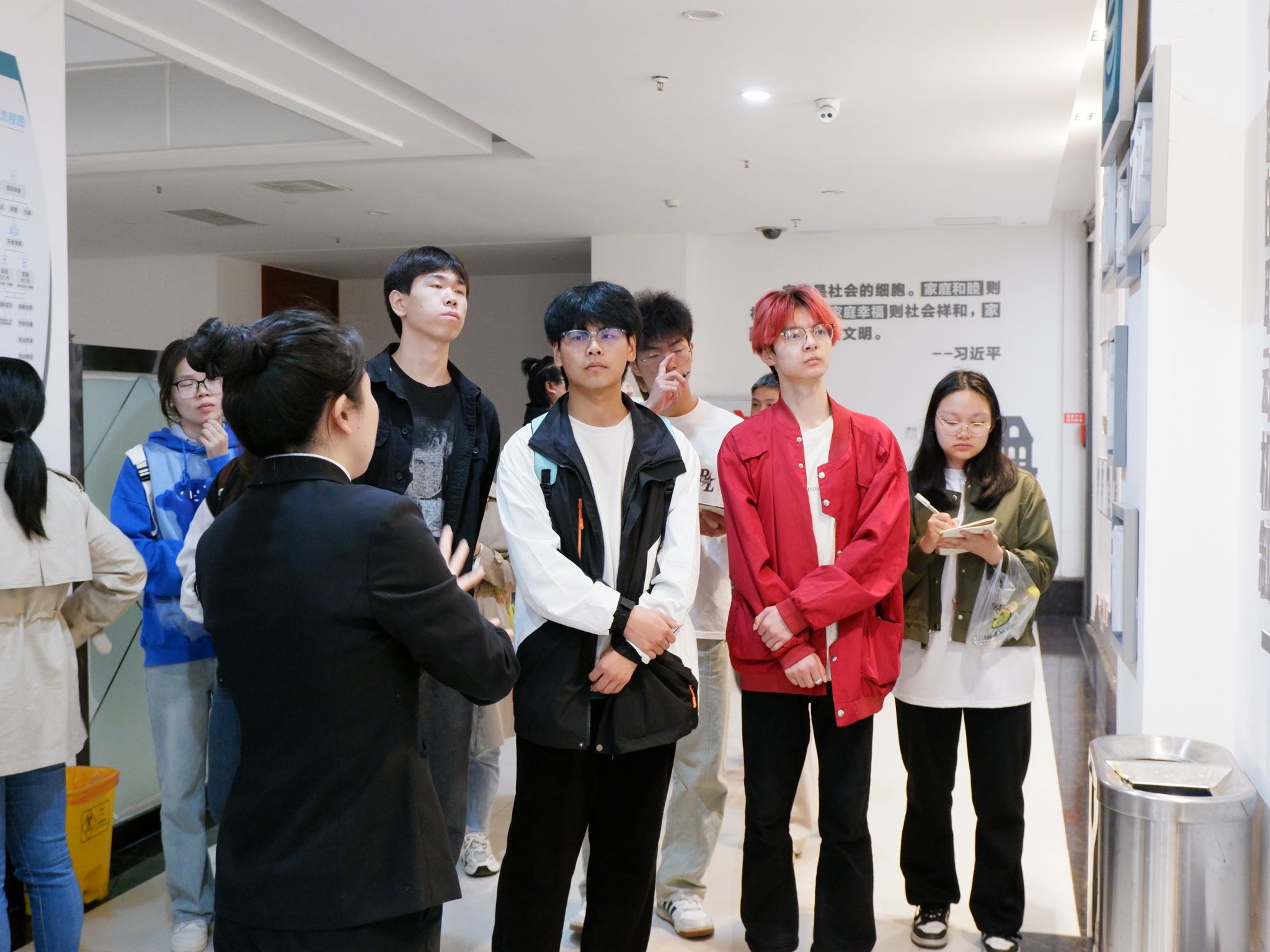 4月10日上午,新商科教学部胡小娟老师、张敏老师、鱼城书院学生发展导师杨钊熙老师带领学生到达合川法院,随后由合川法院团委书记谢远兮、何京霜带领师生参观法院立案大厅,向大家详细介绍诉讼服务中心立案窗口的办理流程和自助立案柜台的具体操作方式,充分展示了司法的便民温度和智能速度。随后,两位书记还向大家介绍了人民法院的纠纷化解联动机制以及辅助法院工作开展的“平台支撑”——人民法院老马工作室、代表委员联络站,和“科技支撑”——车载便民法庭、云上共享法庭,通过线上线下共治,让人民法院更加贴近群众。
