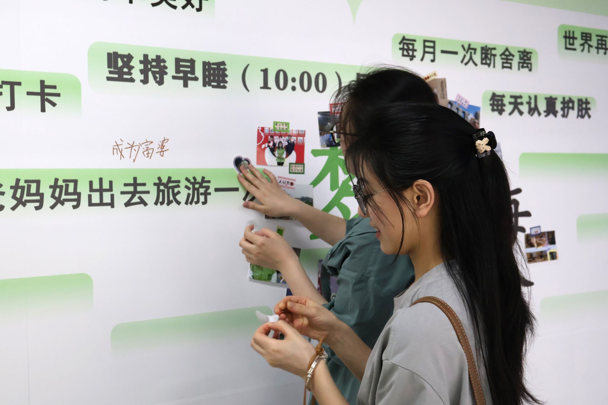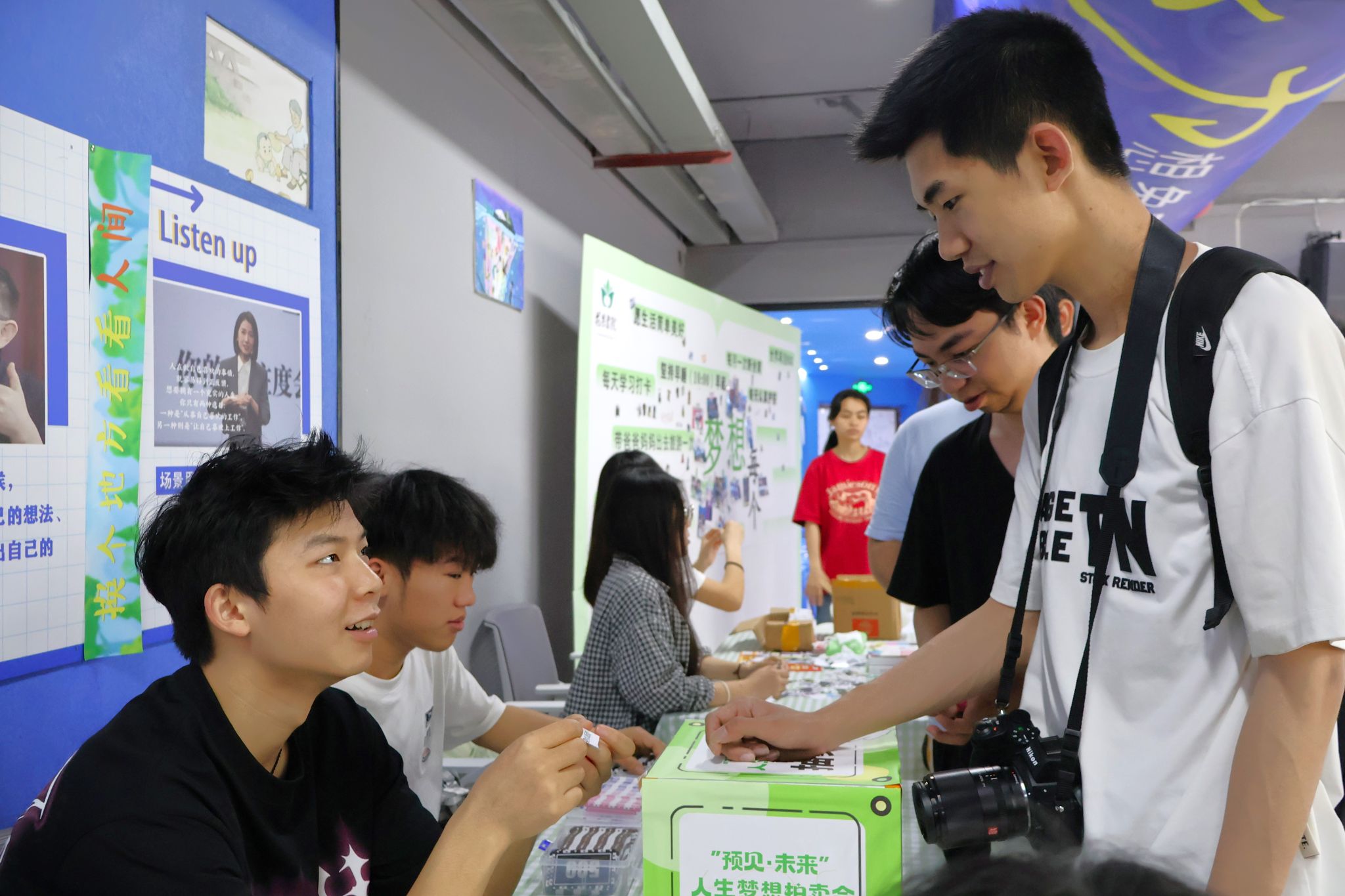 梦想照亮人生,循梦而行,向阳而生。为记录梦想成长瞬间,分享逐梦路上点点滴滴。活动现场设置打卡点,同学们通过贴纸与文字任意搭配,将承载梦想的卡片夹在照片墙上,一件寄予理想与愿望的“梦想收藏夹”逐渐被编织完成。“去北京看一次升旗”、“成为一名vlog博主”、“爬遍五岳”……每一张卡片都是真挚所想,每一份梦想都是一处向往,在等待追寻。同时,为激励同学们清晰自身梦想需求,从而做出正确判断与选择,设立梦想盲盒抽取点位,根据抽取结果,可能金额翻倍、亦可能清空为零……不同选择、不同结果,梦想不仅仅是终点,更是一段充满选择与挑战的旅程。
