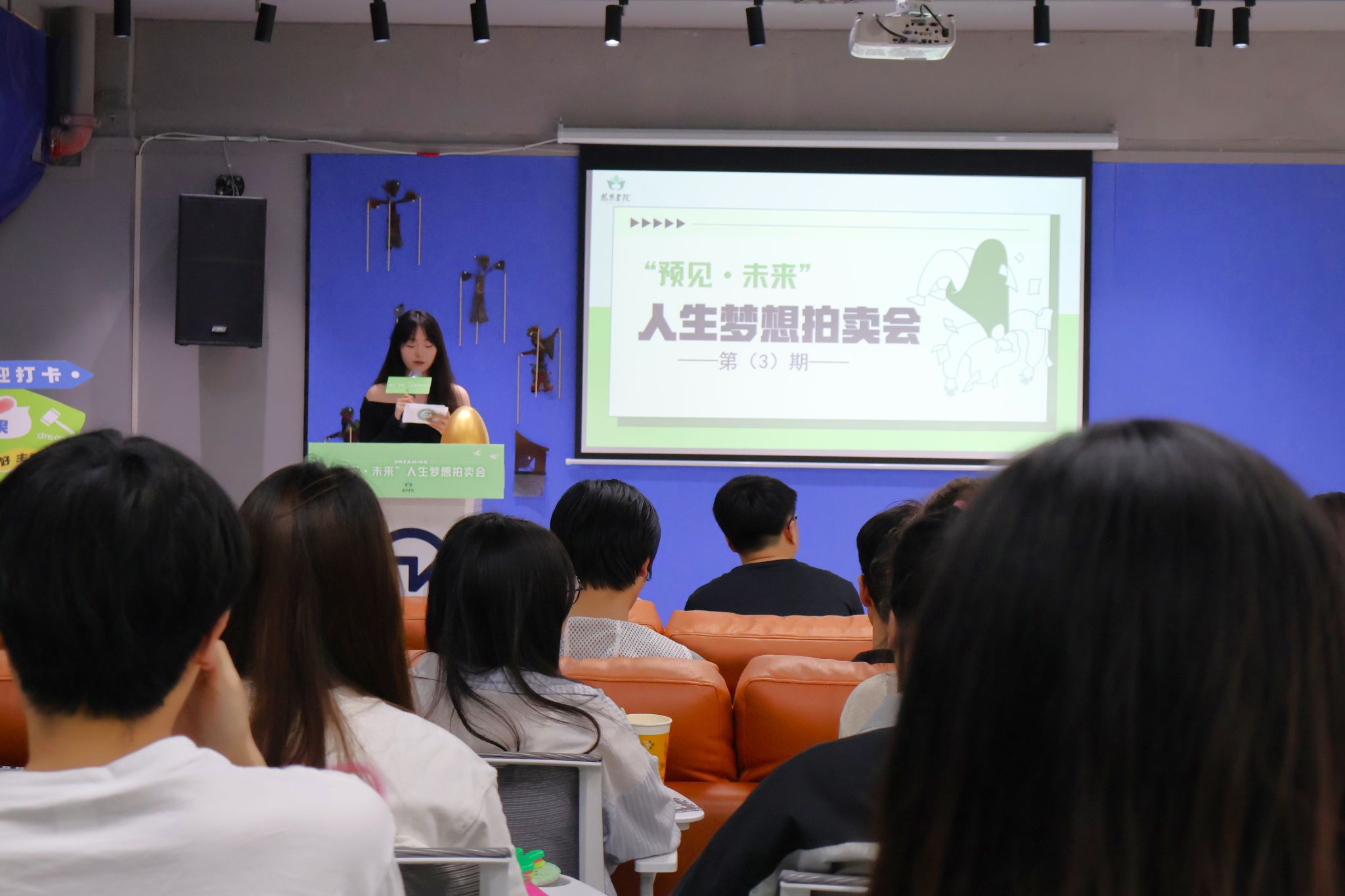 梦想,是驱动我们前行的动力,不同梦想,体现出不一样的人生。为引导学生从容应对VUCA时代带来的变化与挑战,培养学生成为有责任、有担当、有魅力的新青年。花果书院联合青马工程中阶10班于4月19日14:30在天空书院长空报告厅举办“预见·未来”人生梦想拍卖会(第3期)。活动以拍卖会的形式在模拟场景,创新打造“梦想收藏夹”,将同学们梦想具象化展示,增添“梦想搭子”新概念,抒写奇妙梦想故事,用语言表达感召观众,引导学生树立正确的人生态度及价值观。