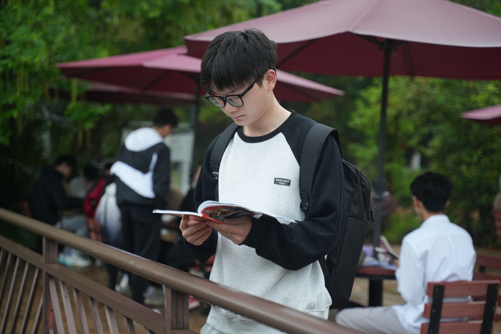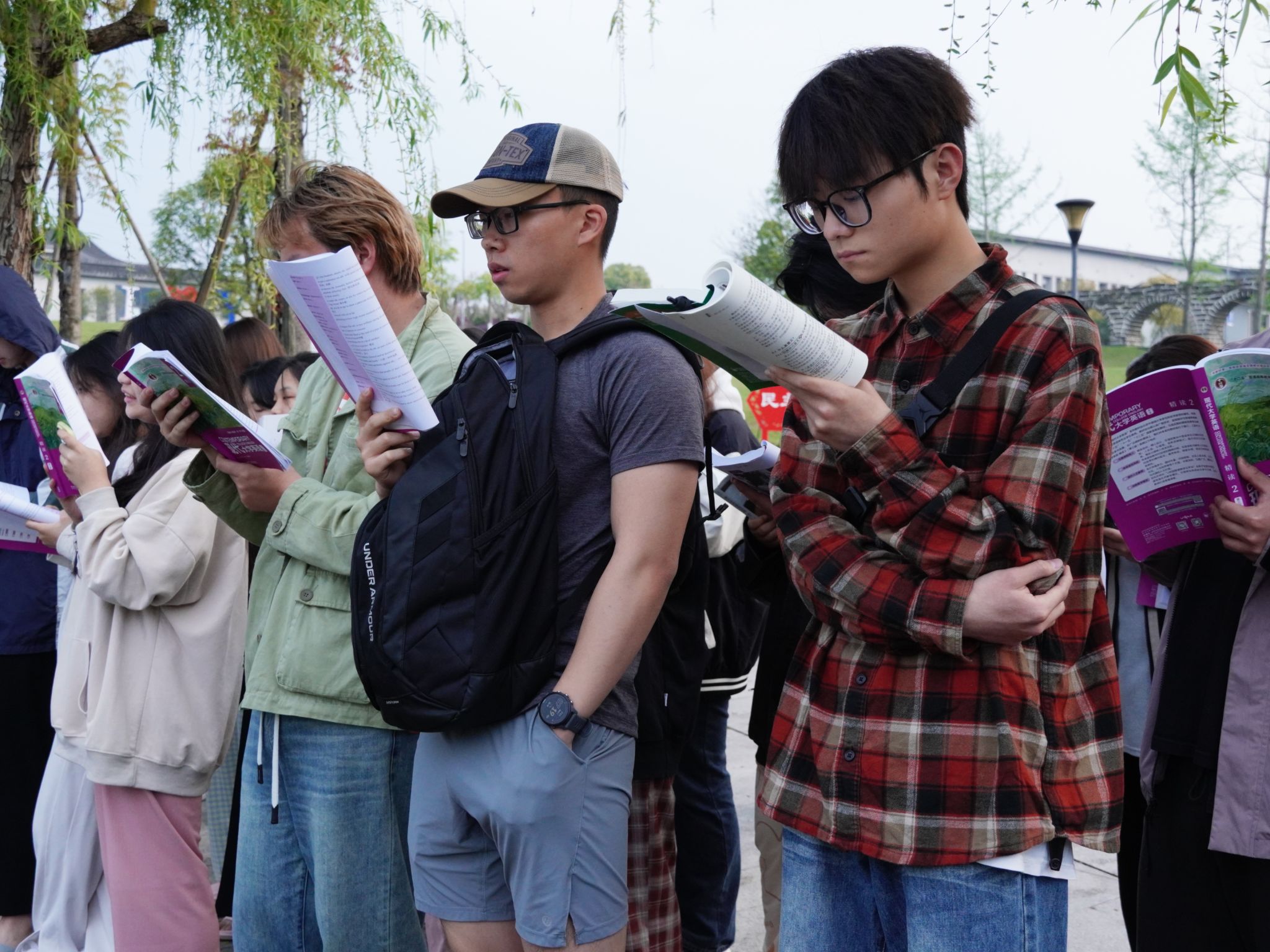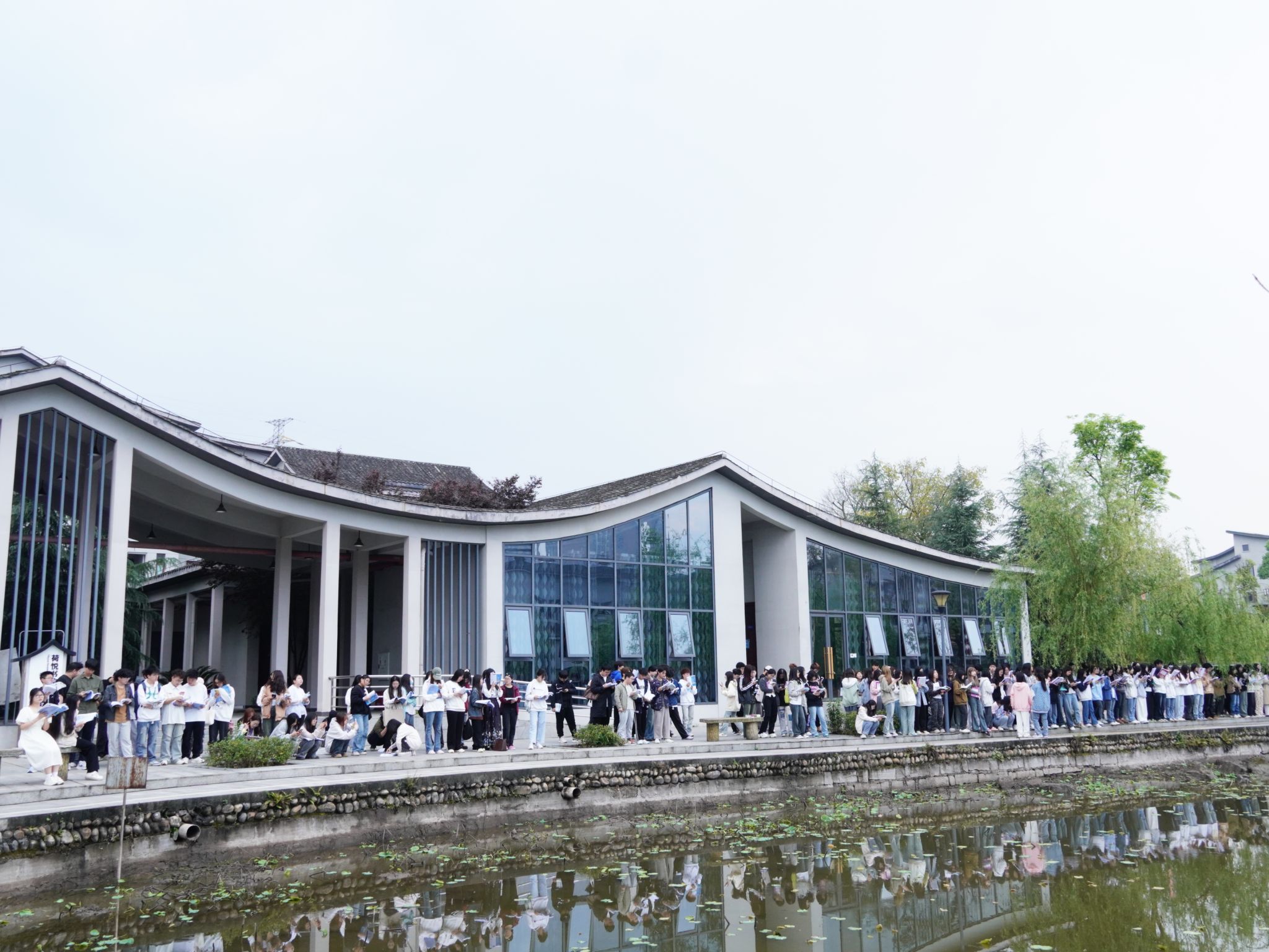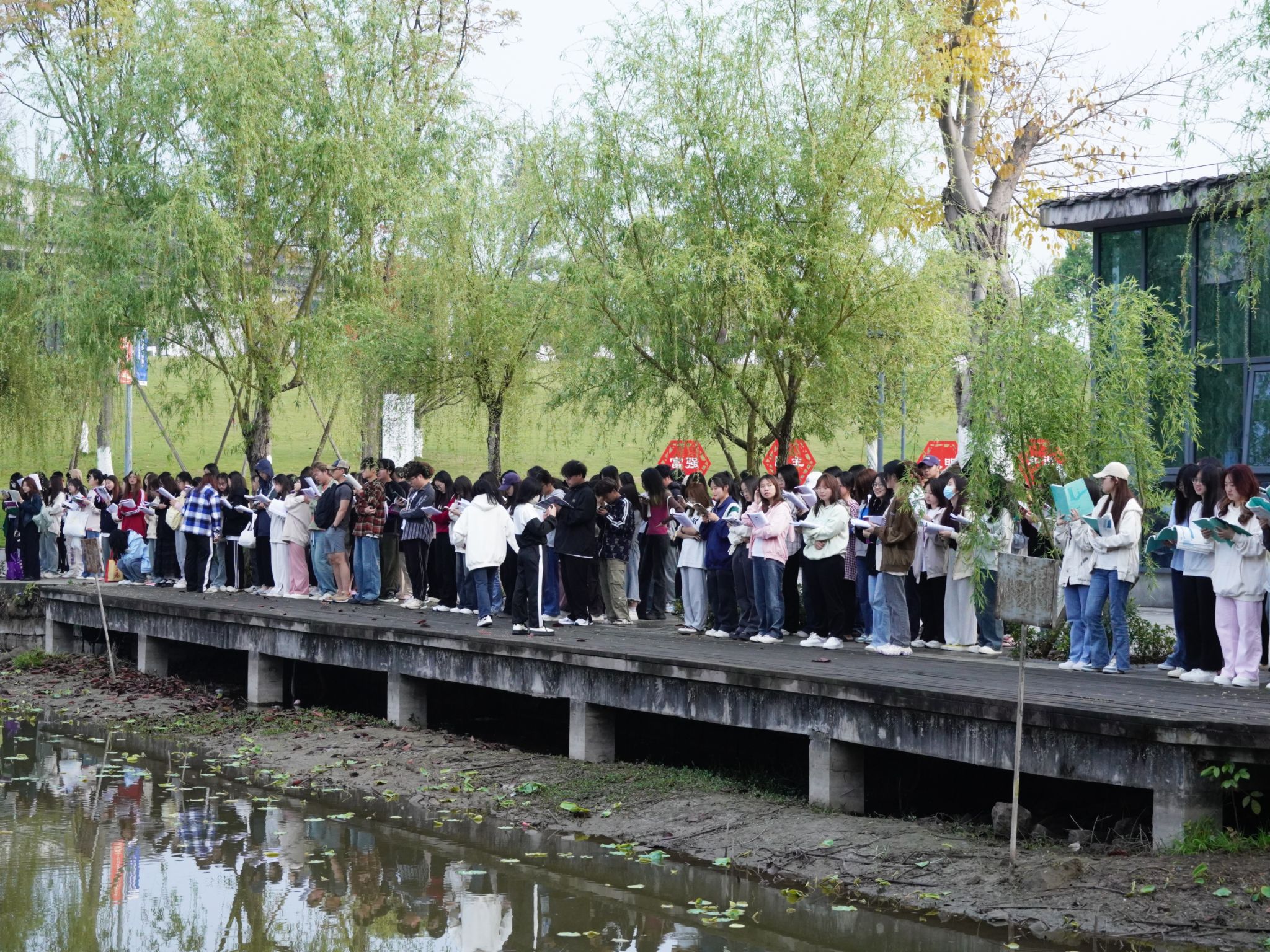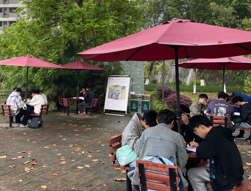 在湖畔的木椅上,还有一些同学捧着各类读物,他们或独自沉思,或轻声交流,享受着阅读带来的宁静与快乐。而那些备考各类考试的同学则更为专注,他们或低声背诵,或高声朗读,用自己的方式诠释着对知识的追求。无论是哪种类型的晨读学子,他们都在清晨的双子湖畔找到了属于自己的那份宁静与充实。他们用自己的方式,一步一个脚印地成长,也在这个过程中不断丰富着自己的内心世界。在双子湖畔、荷悦池塘,每个人都在用自己的方式书写着属于自己的青春篇章。
