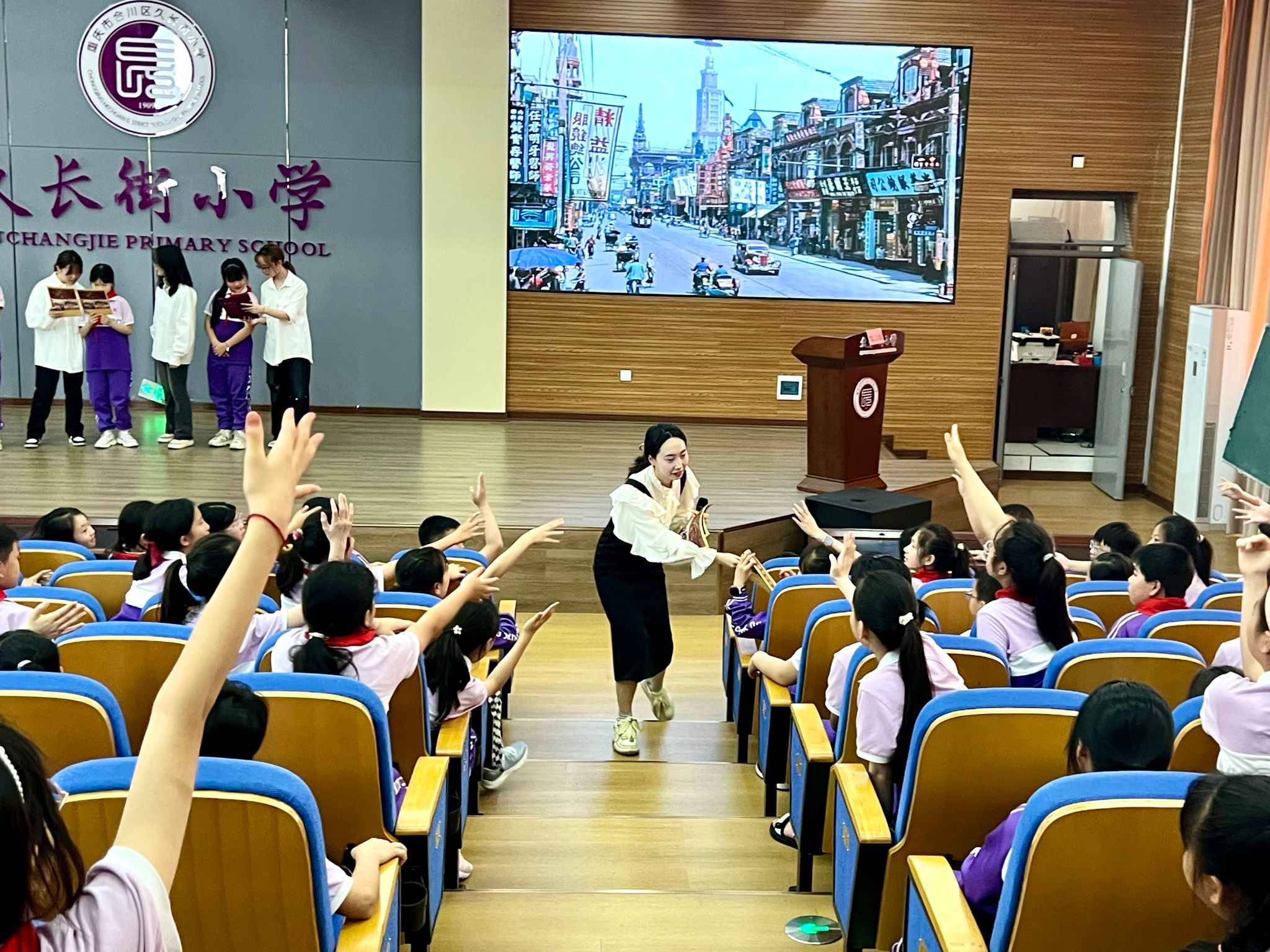 为进一步贯彻落实国家关于思政课的重要论述精神,切实推进大中小学思想政治教育一体化建设工作,发挥思政课在落实立德树人根本任务中的关键作用,5月15日,重庆移通学院鱼城书院联合久长街小学在小学本部阶梯教室,面向200余名小学生开展了大中小学思政教育一体化建设主题活动。大学生走进小学课堂讲述抗日战争中的感人故事,讲好红色故事的同时,主动承担起时代重任,为提升红色文化影响力贡献智慧和力量,同时也激发小学生的爱国情怀。