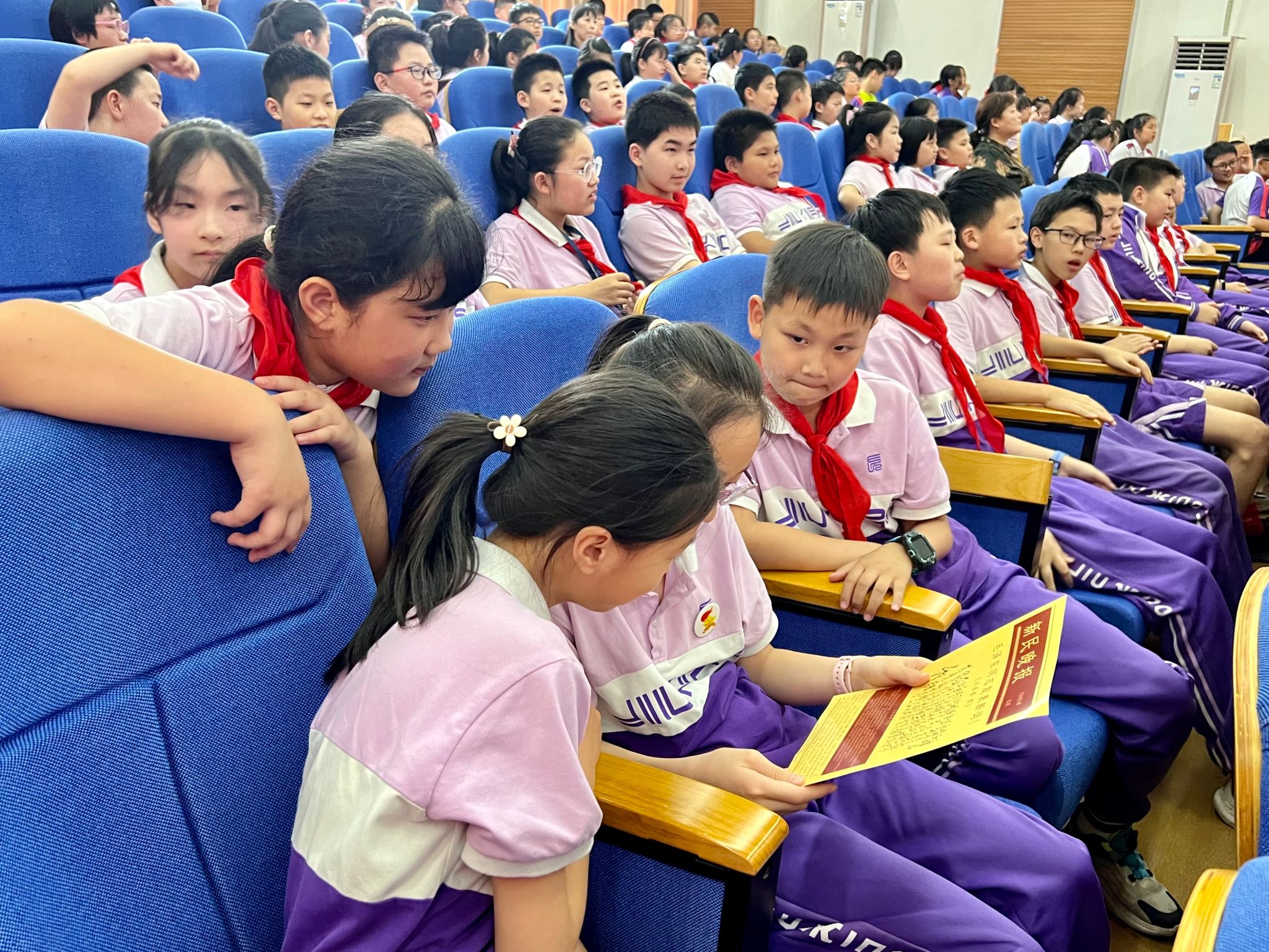作为大学生们在理念上做到“四个红”即传承红色基因、用好红色资源、赓续红色血脉、讲好红色故事在活动现场鱼城书院学子以情景剧《沁园春·雪》为话题引入,围绕阶梯教室,向小学生展示大学生自己设计的“1945年抗日战争时期新民晚报”,通过晚报介绍让小学生们了解历史人物、歌颂当代英雄,达到心灵沟通、启智润心、激扬斗志的效果。