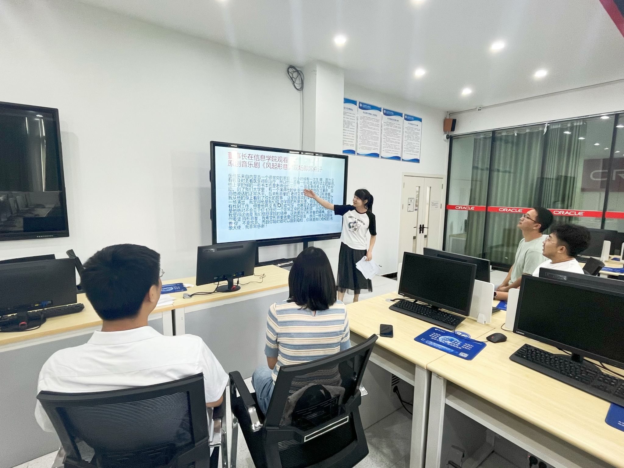 实训中心(合川校区)5月20日组织全体老师学习《董事长在信息学院观看原创音乐剧〈风起形意〉现场即席点评》《董事长在晋中信息学院“通识十年·我们在生长”分享会上的讲话》《董事长在晋中信息学院创新教学及产教融合实践教学分享会上的点评》的重要讲话精神。实训中心(綦江校区)与重点实验室的老师5月24日在綦河书院南渊创写活动室举行大咖阅读分享交流会。实训中心与重点实验室的各位老师就《一往无前》中的片段进行了朗读,刘俊伯、李子涵、蒋秋璐三位老师对阅读大咖书籍后的感悟进行了分享。
