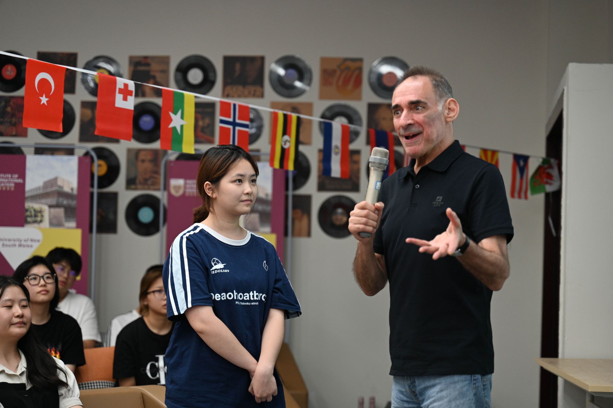 热场活动结束后,师生们移步至声影活动室,在国际教育学院张冰凌老师的介绍下,活动正式拉开序幕。张衍学副校长的出席为活动增光添彩,在亲切问候新生学习生活后,他向大家表示国际留学能够为大家带来更多的可能性,鼓励学生们勇敢追求自己的梦想,并介绍了学校为留学生提供的各种支持与帮助。