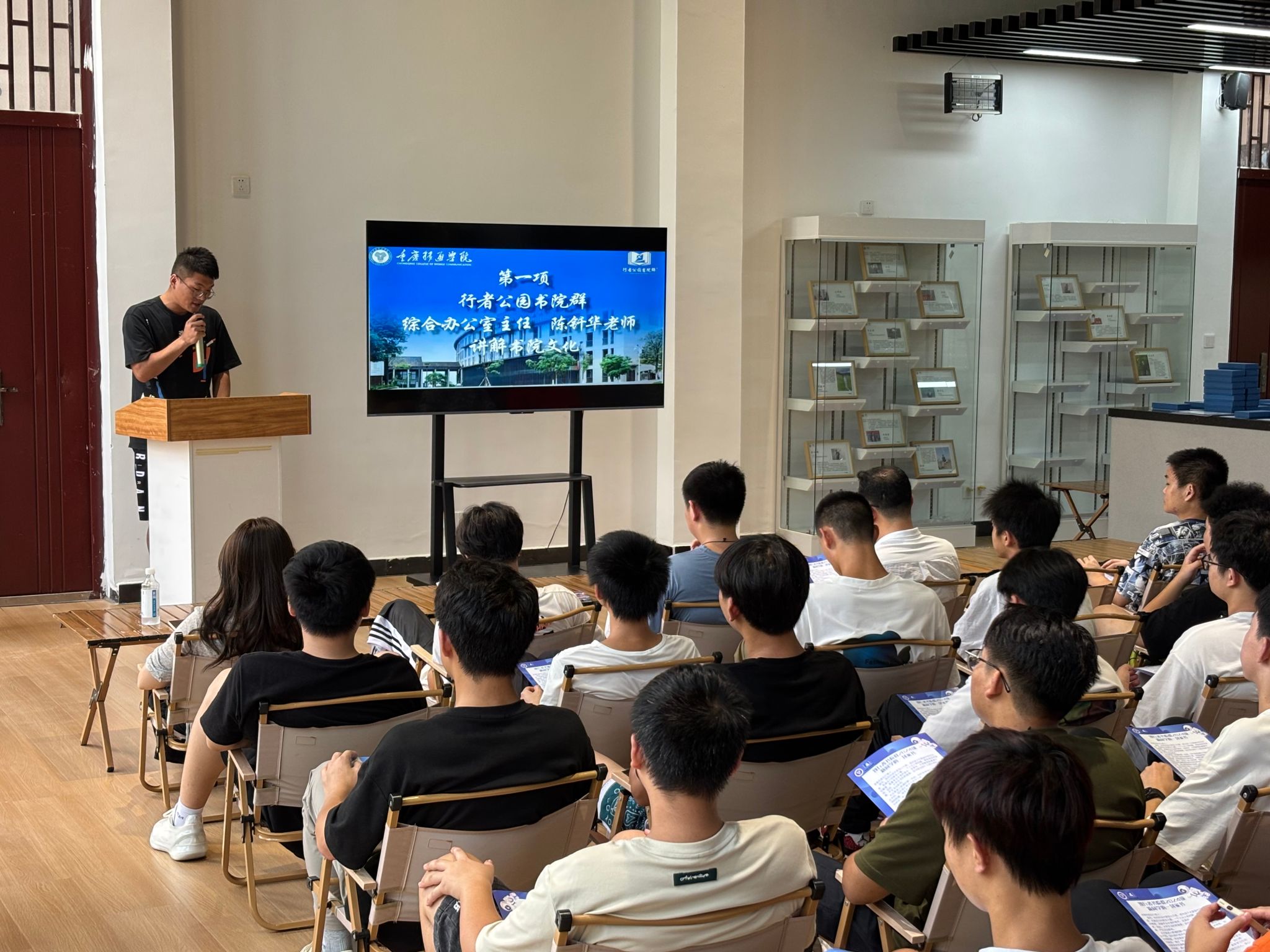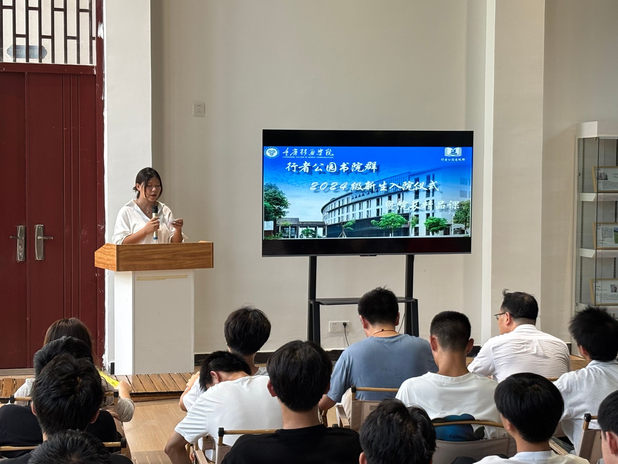 9月25日,“秋风为序·逐梦前行”--行者公园书院群2024级新生入园仪式在荷悦书院109阅览室圆满落幕。仪式开始,陈钎华老师对书院文化的进行了详细的介绍,随后新生代表陈灿与老生代表邢家富接力发言,他们跨越年级的对话,描绘了各自对大学生活的憧憬与收获,更生动展现了完满教育对个人成长的积极影响,共同激励新生勇敢逐梦,照亮自我星途。行者公园书院群名誉院长邱教授紧扣“书院+学院”双院制教育模式的精髓,详细解析了协同育人的创新路径,字里行间透露出对学子们的深切关怀与厚望。仪式尾声,邱教授为新生代表颁发入院证书,再次寄语新同学,鼓励他们秉承书院精神,勇于探索,不懈追求,在知识的海洋中扬帆远航,共同绘制行者公园书院群更加辉煌的明天。