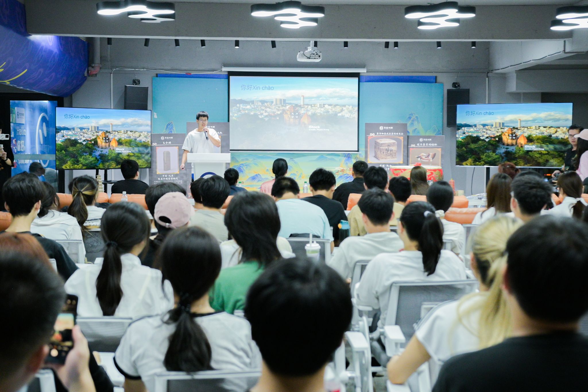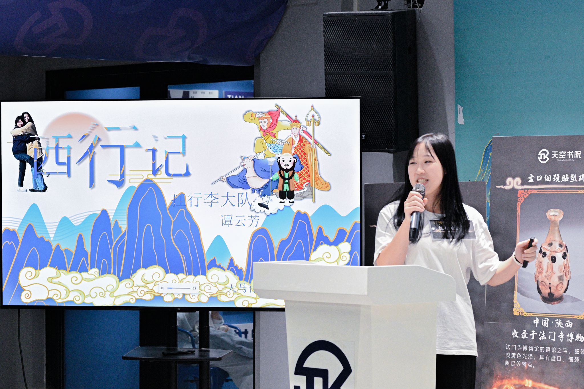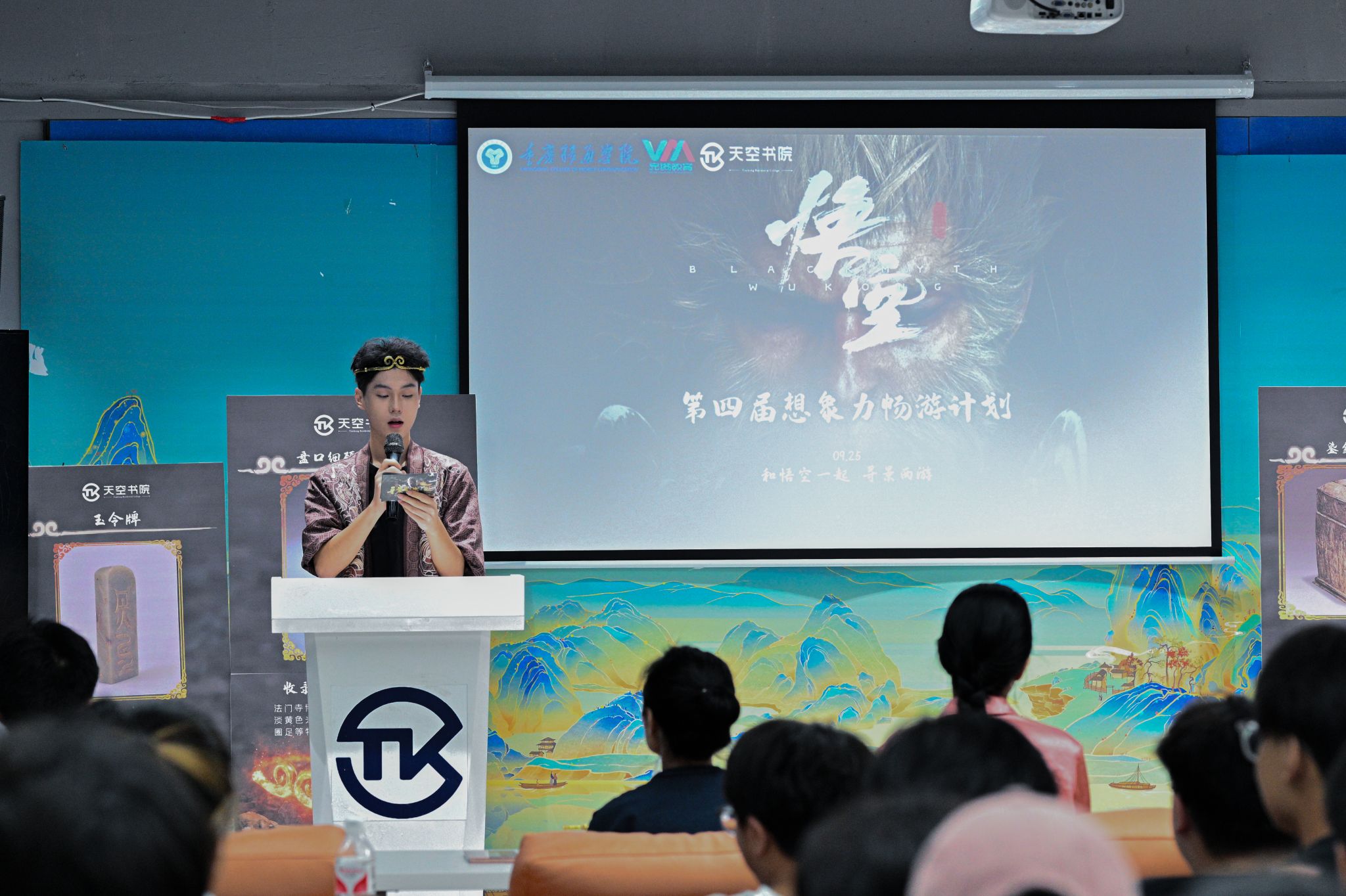 烟霞缥缈随来往,寒暑无侵不记年。9月25日,第四届想象力畅游计划在天空书院长空报告厅顺利开展。活动特别邀请到通识教学部教师代表刘慧琴老师、创意写作学院教师代表杨玥老师、天空书院教师代表李英杰老师作为评委出席活动,学生书院联合会、第三届畅游计划一等奖团队、学生代表及150名现场观众作为大众评委参与活动。立足于天空书院想象力,结合即将到来的十一小长假旅游高峰期及当下爆火的《黑神话:悟空》游戏,鼓励同学们放飞想象,发挥创意想法、大胆策划旅游攻略、深入挖掘西游景点、展现大学生想象力与活力。十一假期,攻略指路,畅游西行。逐天地,渡江海,越万山,在古今交汇处,打卡大圣严选,感受天地壮美,怕甚么山高路险,自往前。