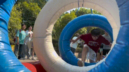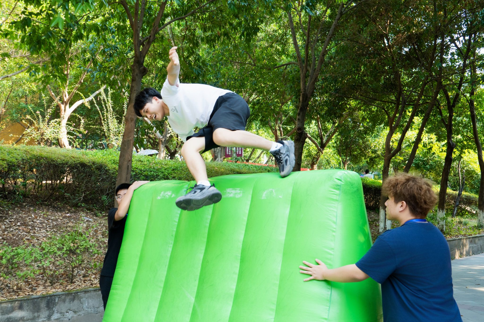 把闯关赛道从荧幕搬到现场,搬不走的是道具,搬得走的是创意,为给学生呈现最还原、最刺激、最热血的闯关现场,本季活动特上新“鱼跃龙门”“穿越丛林”“时空之轮”“乘风破浪”等系列专业充气赛道。从陆地到水上,从技巧赛到冲刺道,从团队协作到各放异彩,趣味满满而又不失竞技难度的花样赛道集结于此,让学生在这场不断进阶的挑战赛中打怪升级,并肩作战,跨越重重障碍,奔赴勇气之巅。