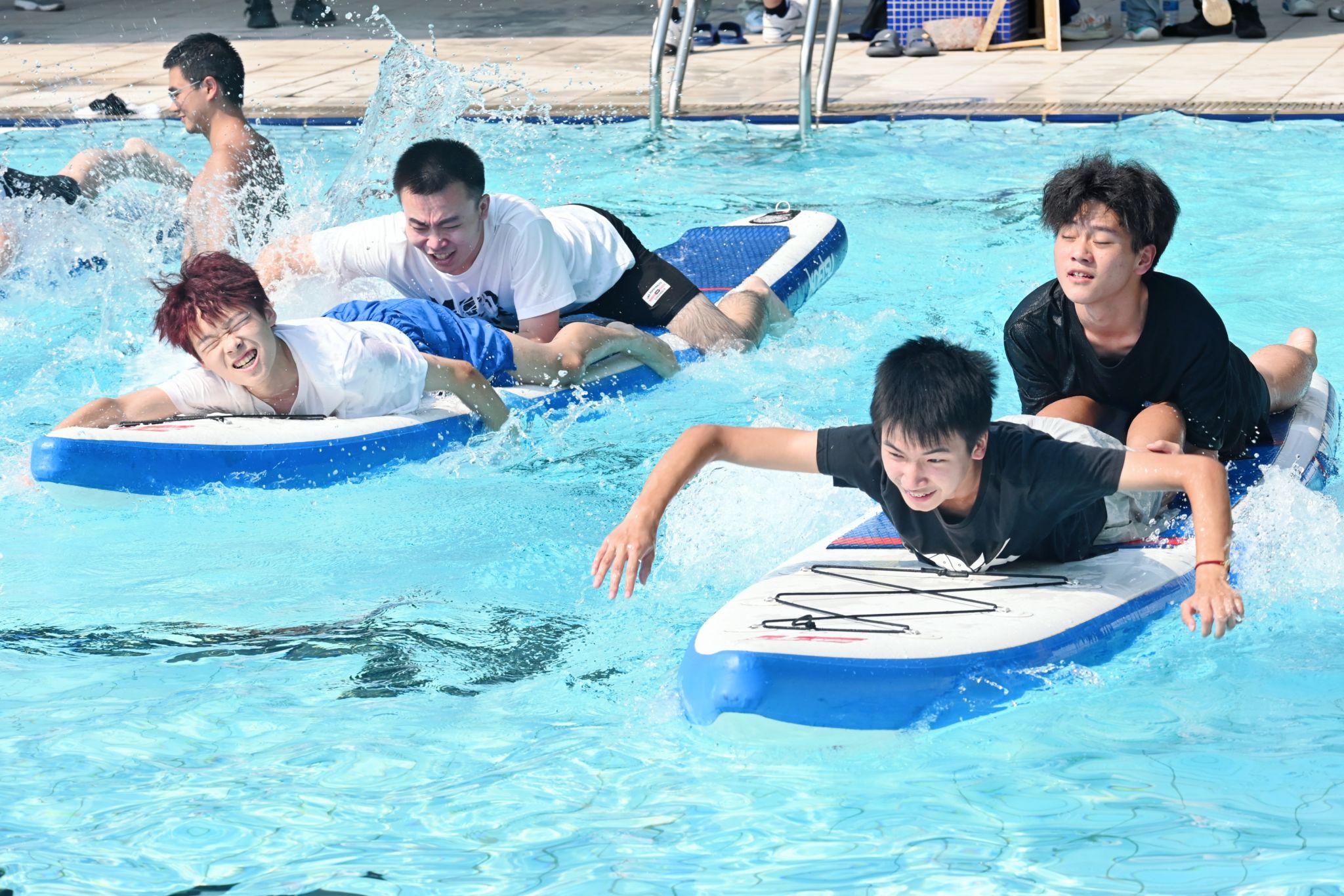 今年,个人英雄主义的单打独斗已不再是主流,简单的个人赛事已经不能满足移通学子,他们渴望的是团队协作的集体荣耀。爱莲书院满足学子们的需求,全新开启团队赛道。6人的团队从陆地的同手同脚协调赛,到水面上的多人浆板平衡挑战,在这些精心设计的团队赛道中,他们肩并肩,手牵手,每一次的挑战都是团队意志的磨砺,每一次的前进都是团队默契的体现,每一次的协作都是团队精神的彰显。