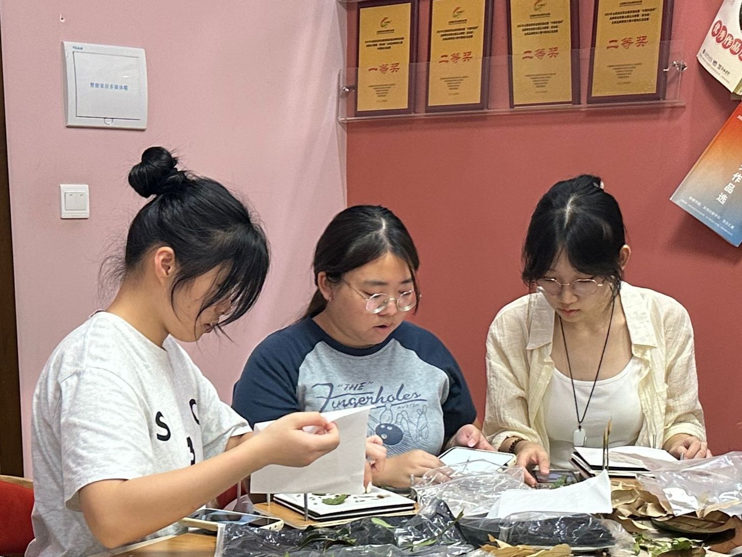 如果说浇水和耕种是赋予土地新的生命,那么手工组的同学则是将自然的痕迹留存下来。工作人员就茶皂、干花相册制作的注意事项、流程、安全事项等方面做了分享,在同学们跃跃欲试的神情中,茶皂、干花制作初体验徐徐拉开帷幕。同学们按照制作方法的程序去一道一道复刻,看着渐渐定型的茶皂,轻嗅着鼻间弥漫的浓浓茶香,成就感油然而生。枯叶被固定在纸张上,一次又一次的按压、粘贴,同学们细致轻微的动作之中,蕴含的是他们对生命的敬畏与尊重。在集趣味与体验于一体的劳动实践过程中,以学、看、闻、做的方式近距离感受了传统劳动人民的智慧产物,深深体现了劳动教育贴近生活实际的时代价值。