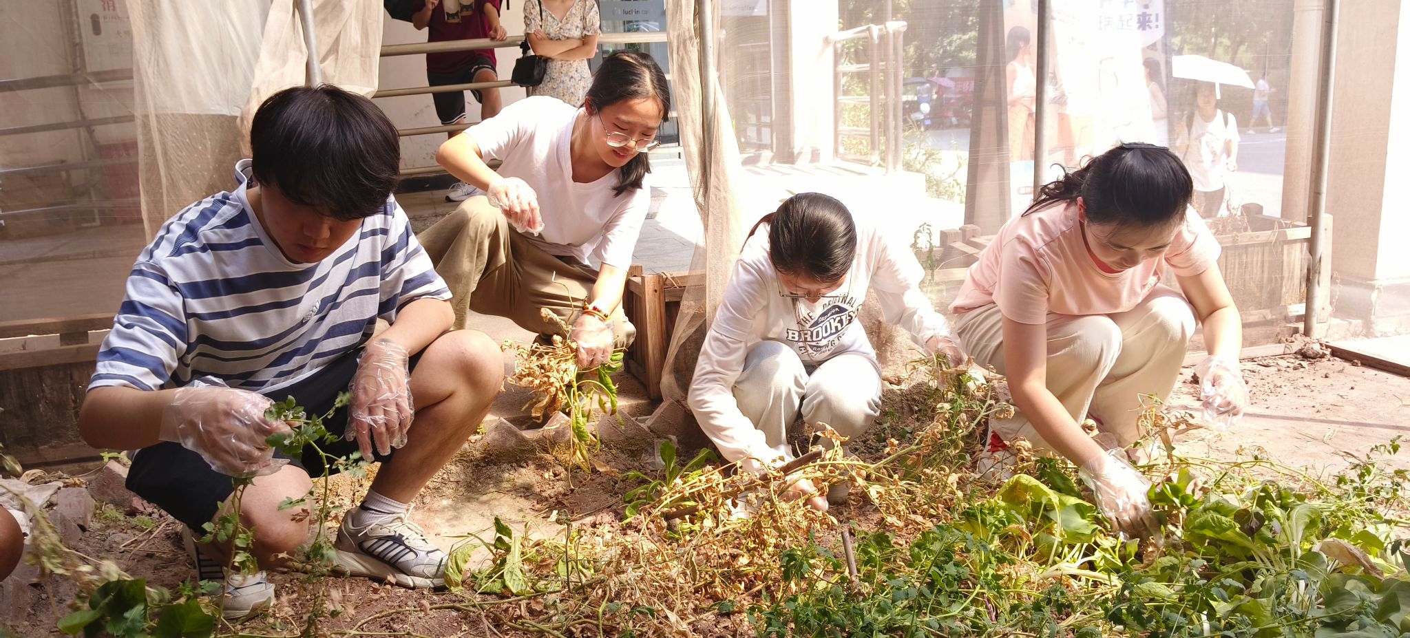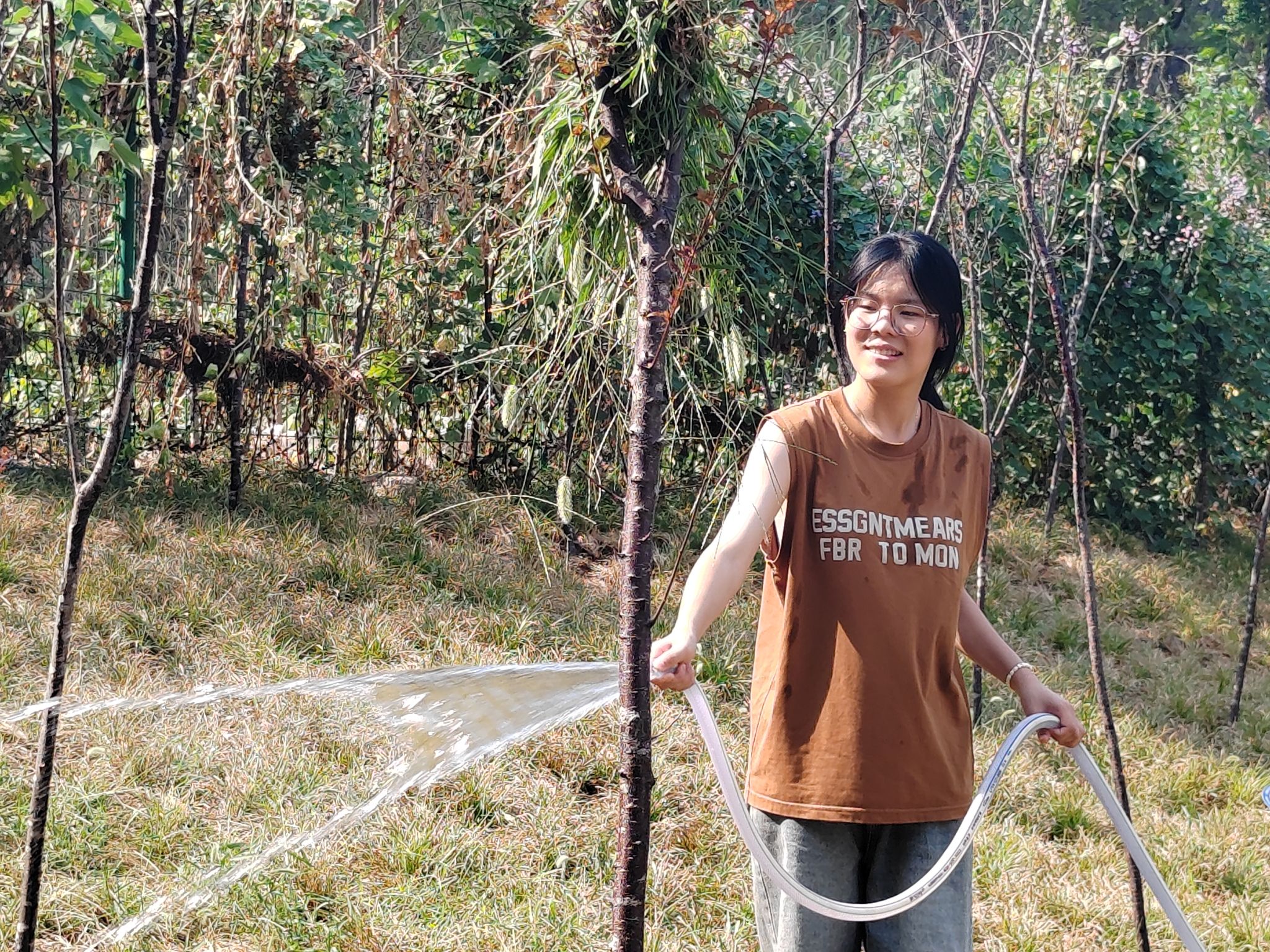 当前正值蜜柑生长需水高峰期和关键期,今年受高温干旱天气影响,校内初次挂果的柑橘树受到了以往不曾遭遇的“烤”验。耕种组的同学们在工作人员的带领下对校内柑橘树、蔬菜大棚进行了除草、保湿、养护工作。他们之中,有人除草、有人翻土,有人浇水。尽管劳累,但看着原先杂草丛生的荒地经过一番劳作后焕然一新,参与者的脸上也扬起了自豪的笑容。探索校内种植,不仅是劳动教育氛围下同学们的踏实肯干,更是同学们对自然的敬畏、对劳动的热爱和成长的期待。