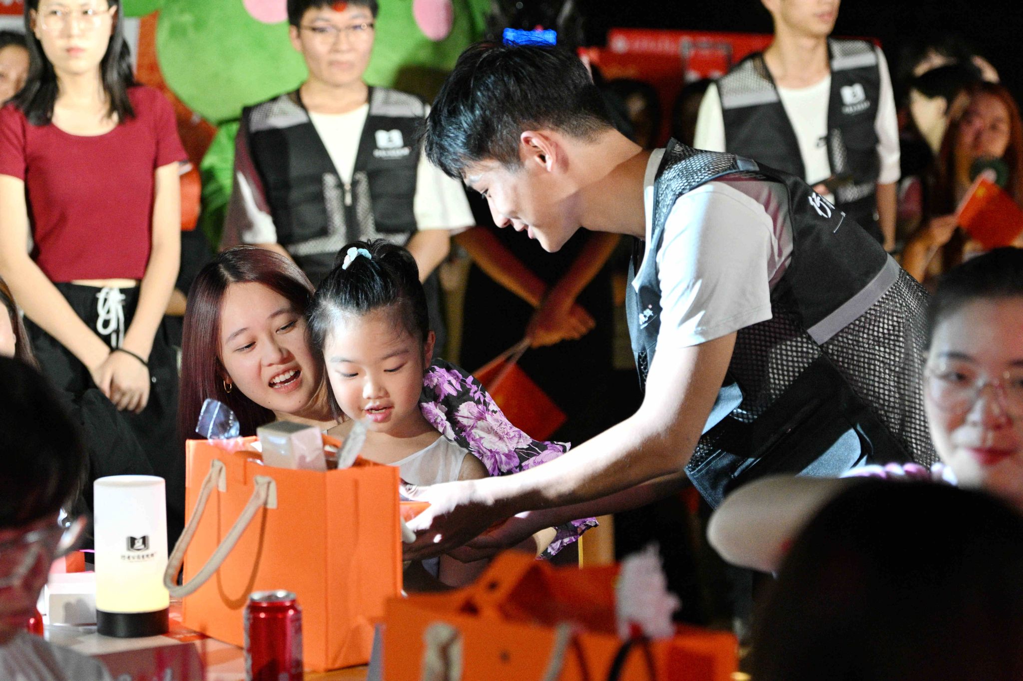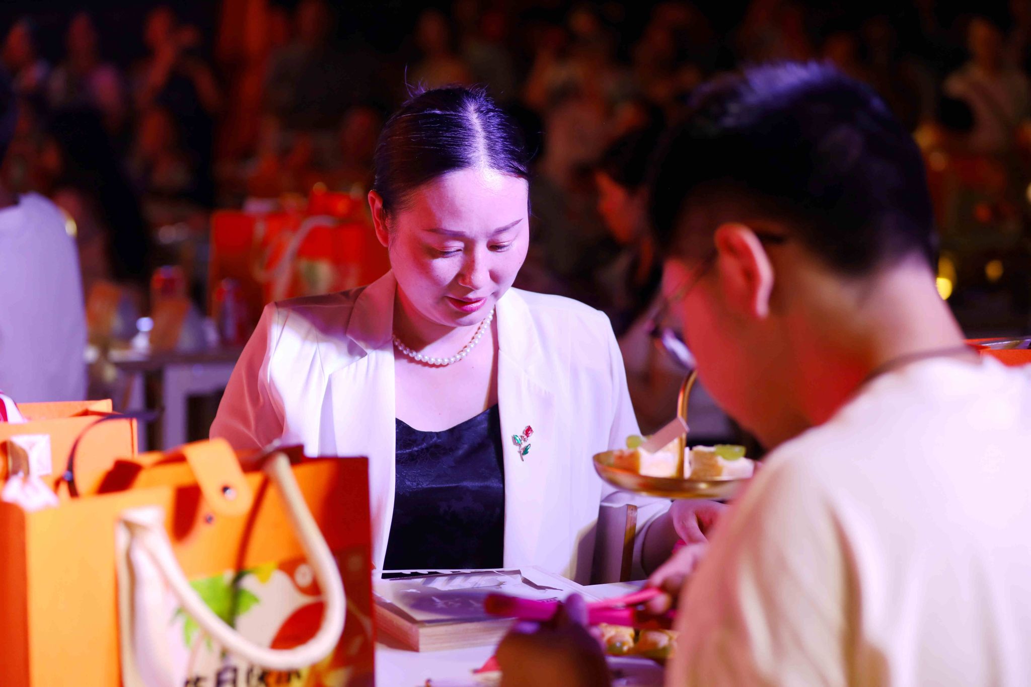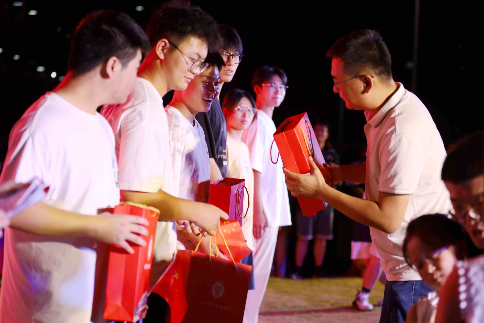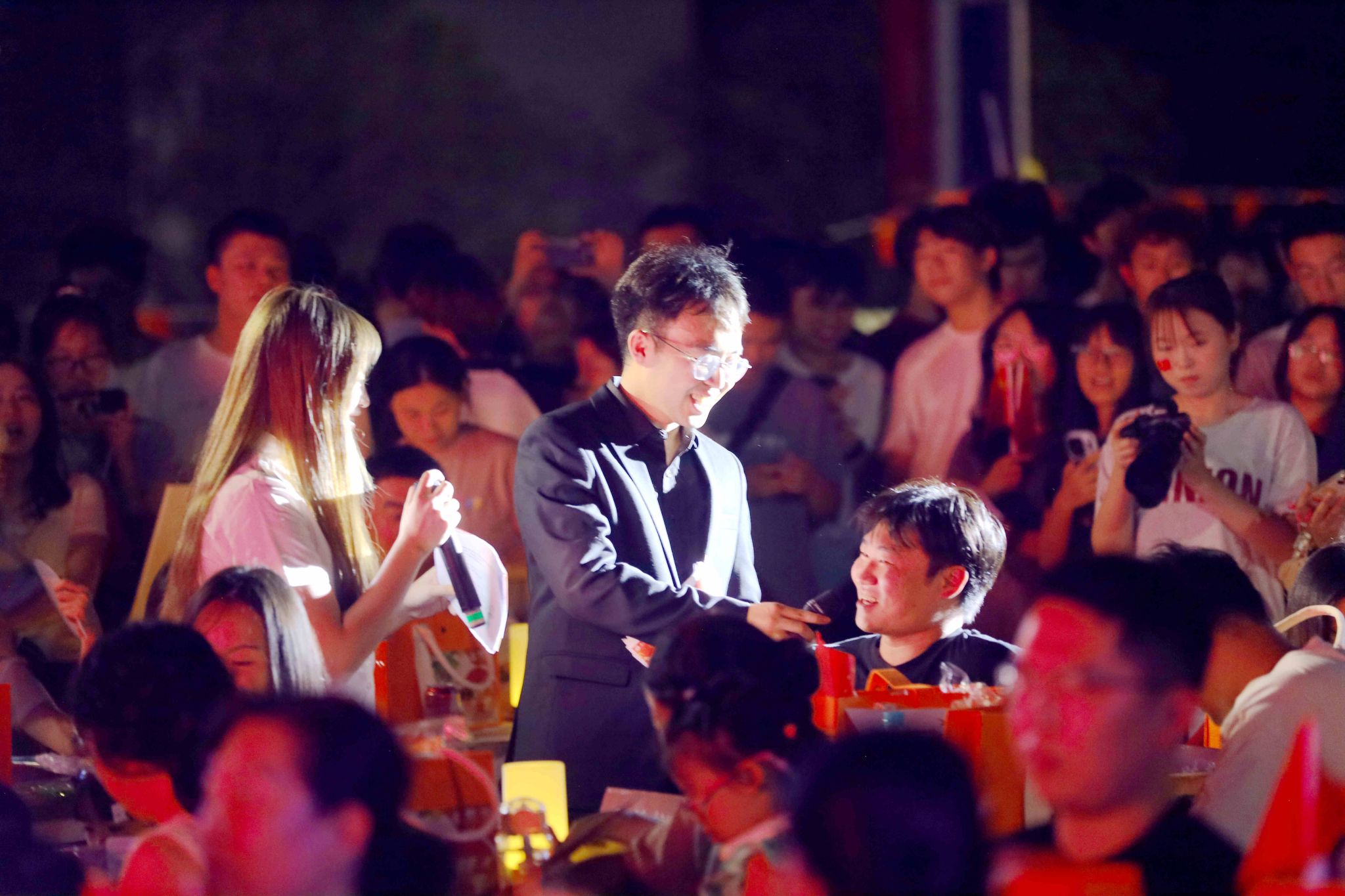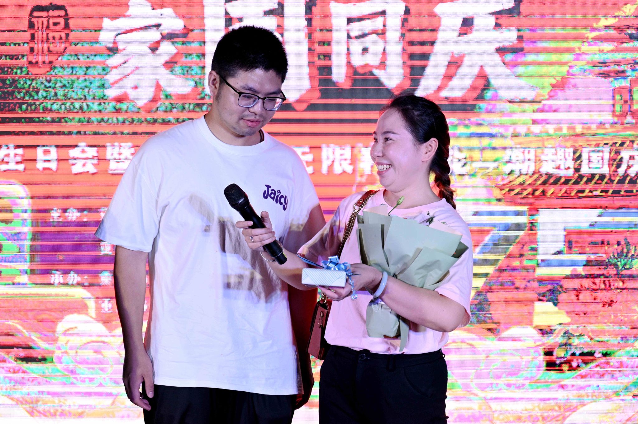 欣逢盛世,何其有幸,喜迎华诞,共绽欢颜。生日会上,特别设计的幸运抽奖环节更是点燃了全场观众的热情,随着抽奖轮盘的持续转动,现场的气氛被烘托得愈发火热,一如闪耀全场的中国红。抽奖环节邀请了寿星家长代表,远景学院副院长李军,校团委书记、书院部部长穆春江分别为在场的寿星进行了三轮的抽奖,六名师生代表幸运“出圈”。穆春江老师为幸运师生送上了寓意深远的“共襄盛世,福运锦囊”大礼包,希望他们能够在国之盛世收获幸福和圆满,亦希望他们能够成为建设祖国的栋梁之才。同时,祝福九月份过生日的寿星老师、同学们生日快乐。在未来的日子里,能够在移通,在书院,友好地为所欲为,尽情地野蛮生长。