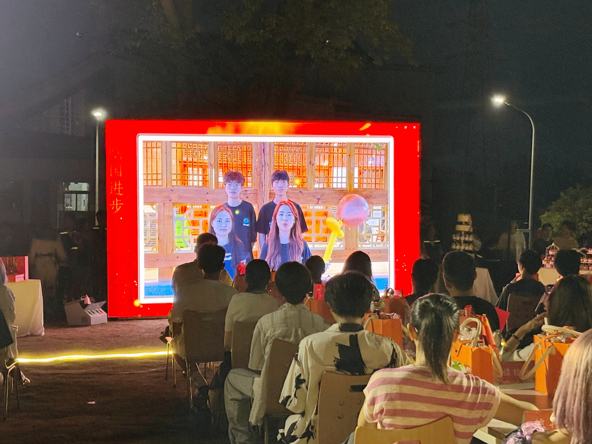 随后,活动现场的氛围被一股浓浓的温情所笼罩,大屏幕缓缓亮起,播放起特别为寿星们准备的祝福视频。视频以炽热的红色为主色调,承载着寿星家长、亲朋好友及老师们满满的爱意与祝福,也巧妙地将这份温情与对新中国75周年华诞的自豪与祝福交织在一起,让每一帧画面都洋溢着非凡的意义与双重的喜悦。这一刻,屏幕上的每一帧都化作了现场最温馨、最浪漫、也最令人动容的“情感告白”,大家共同沉浸在这一份份真挚的情感之中,铭记下这个充满温情、祝福与感动的难忘时刻。