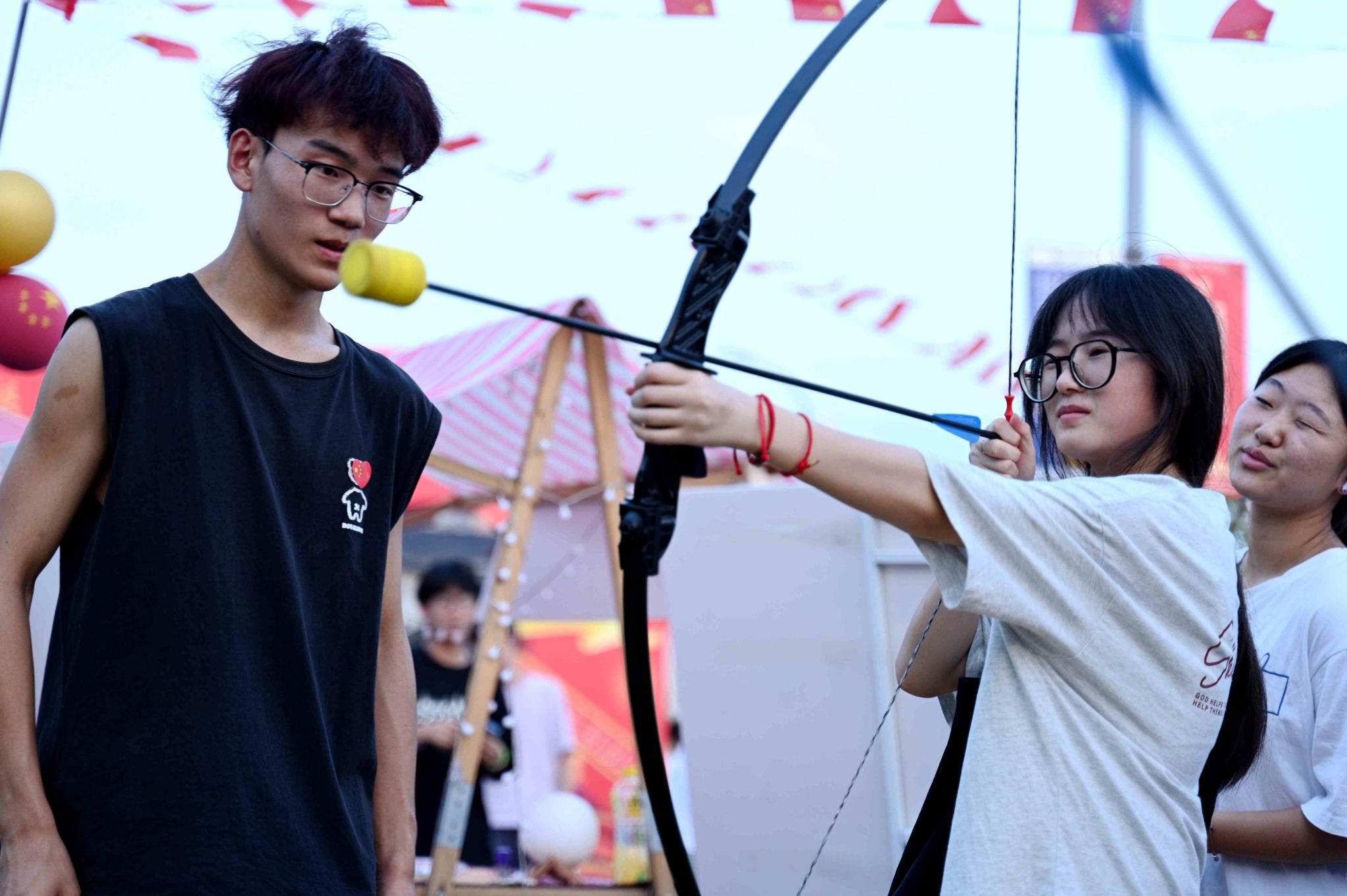 学生书院联合会带来射箭体验,展示中国传统文化的魅力,庆祝国家的繁荣昌盛;emoji忆红色故事,传承红色精神,铭记历史;花果书院通过“重温长征路”让同学们以趣味性的方式赓续红色血脉,弘扬爱国主义精神,“中国红”顶线画以一针一线“小家”之巧思,共绕祖国“大家”之魅力;汇江书院带来象征吉祥如意的国庆豆彩绘;北山书院体验传统手工艺的魅力:爱莲书院通过制作超轻黏土并粘贴在祖国地图上,向祖国母亲的华诞送上祝福;