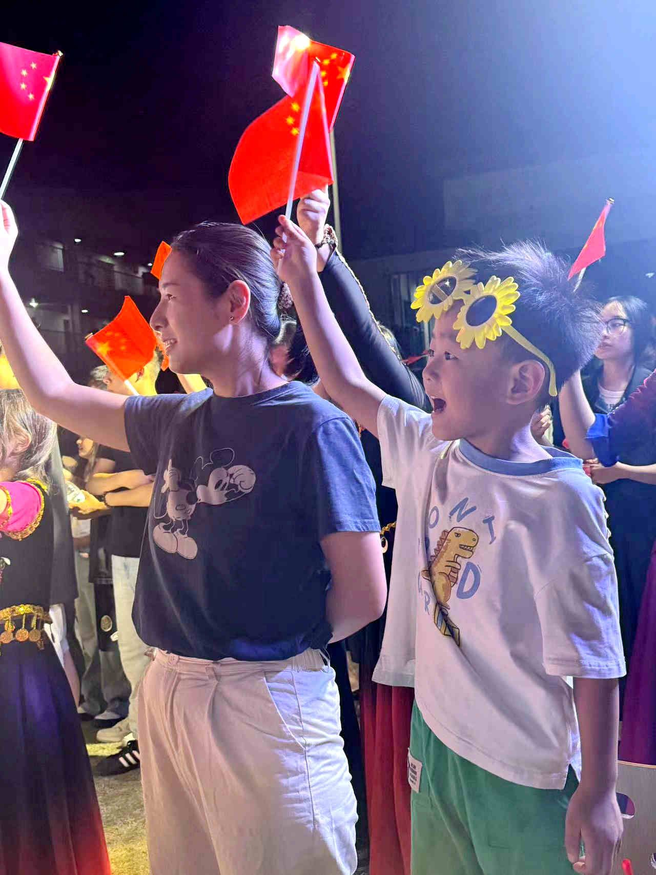 在现场国旗飘扬间,每一张洋溢着幸福与自豪的笑脸,都寄托着对家园和祖国最真挚、最美好的祝福。这一刻,师生们的心已紧紧相连,共同体会到了“民族一家亲,家国情怀深”的深刻内涵。他们的歌声不仅是对祖国的热爱与赞美,更是对民族团结、家国情怀的深情颂扬。这不仅仅是一场音乐的盛宴,更是一次心灵的洗礼,师生们以实际行动向祖国献礼,共同祈愿祖国母亲繁荣昌盛、万寿无疆,这份深情厚意伴随着歌声,飘向远方。