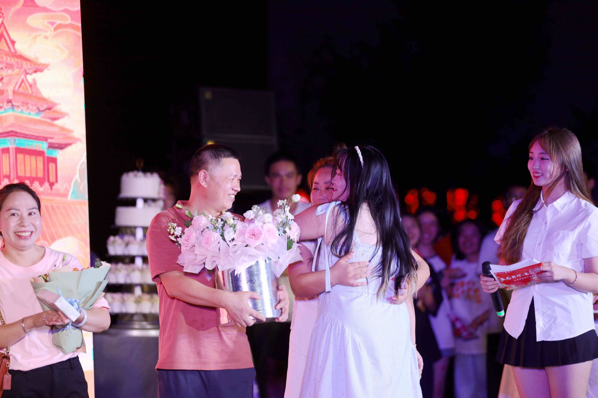 在颁发礼包的同时,嘉宾们借此机会向在场的所有寿星致以了温馨的生日寄语,让每一位寿星都深切感受到了来自学校的关怀与温暖。这一环节不仅增添了生日庆典的欢乐气氛,更让在场的每一个人都感受到了团结、友爱和共同庆祝祖国繁荣昌盛的深厚情感。