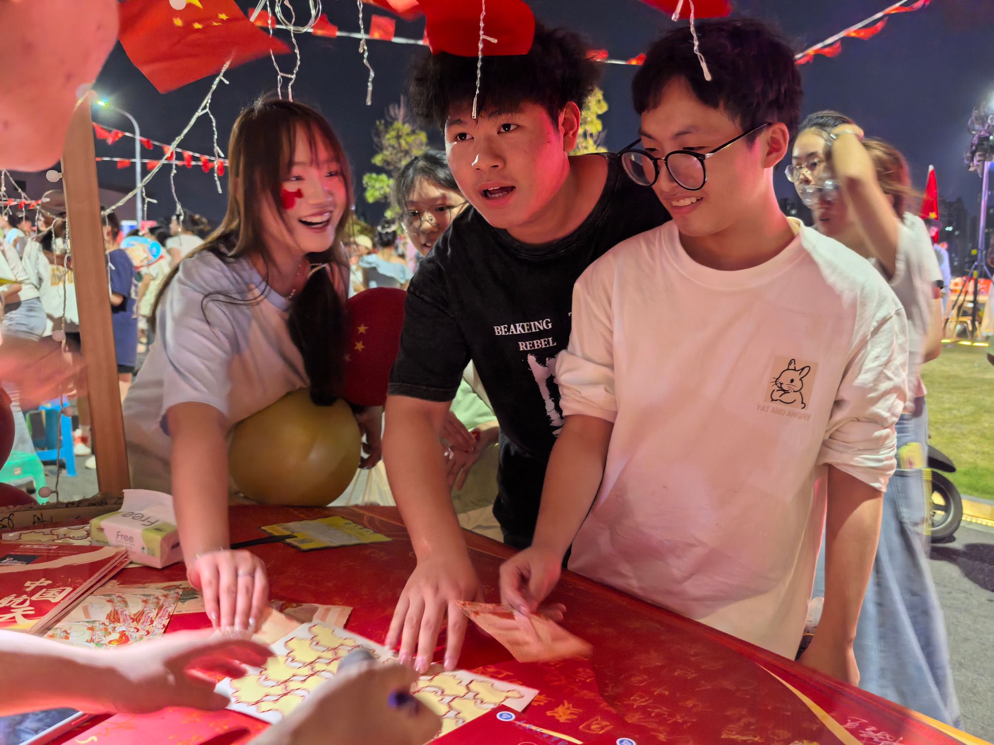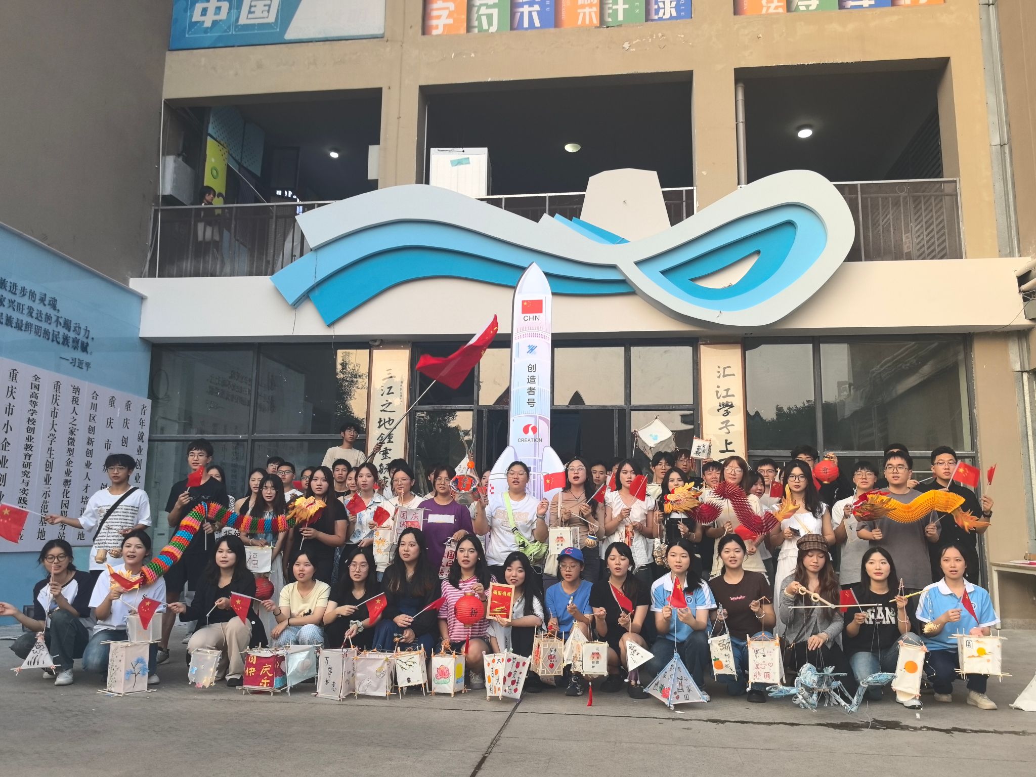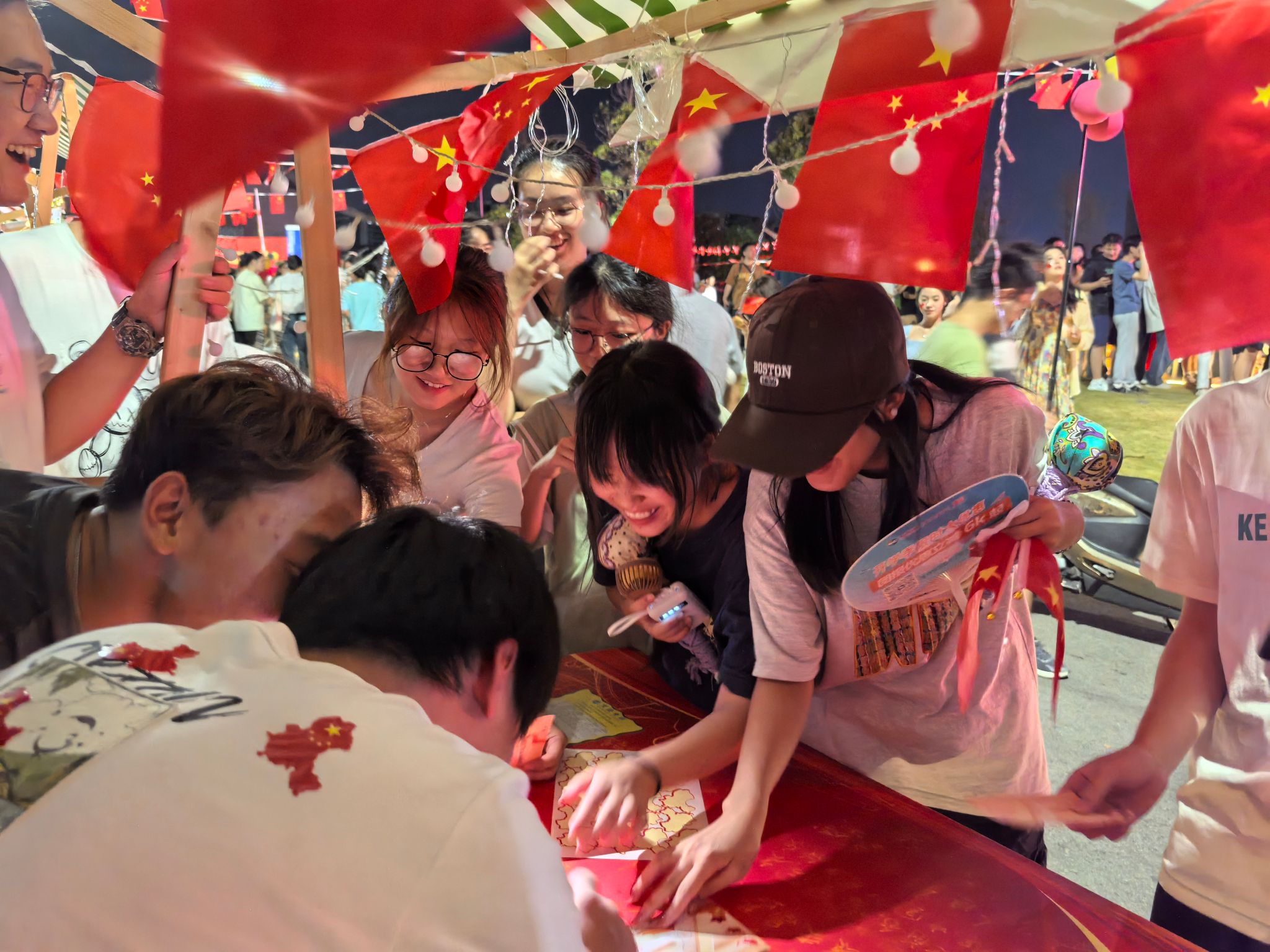 为热烈庆祝中华人民共和国成立75周年,深入学习贯彻党的二十大及二十届三中全会精神,落实立德树人根本任务,弘扬和激发爱国主义精神,铸牢中华民族共同体意识,切实提升学生民族自豪感。同时,也为给全校师生一份特别的开学见面礼、一份特殊的家节庆祝礼,并且向2024级新同学传递书院“家”文化概念,让每位同学都能感受到来自家的温暖。9月28日晚19:00,由重庆移通学院书院部、工会委员会主办,行者公园书院群、远景书院承办的“沐光前行·家国同庆”九月师生集体生日会暨“+”的无限种可能潮趣国庆游园会在北校区行者公园大草坪燃动开幕。同时,由书院部联合花果书院、汇江书院、北山书院、爱莲书院、别都书院、廊桥书院、南湖书院、天空书院、鱼城书院9大社区文化式书院共同举办的“+”的无限种可能潮趣国庆游园会活动也在行者公园同步开启。