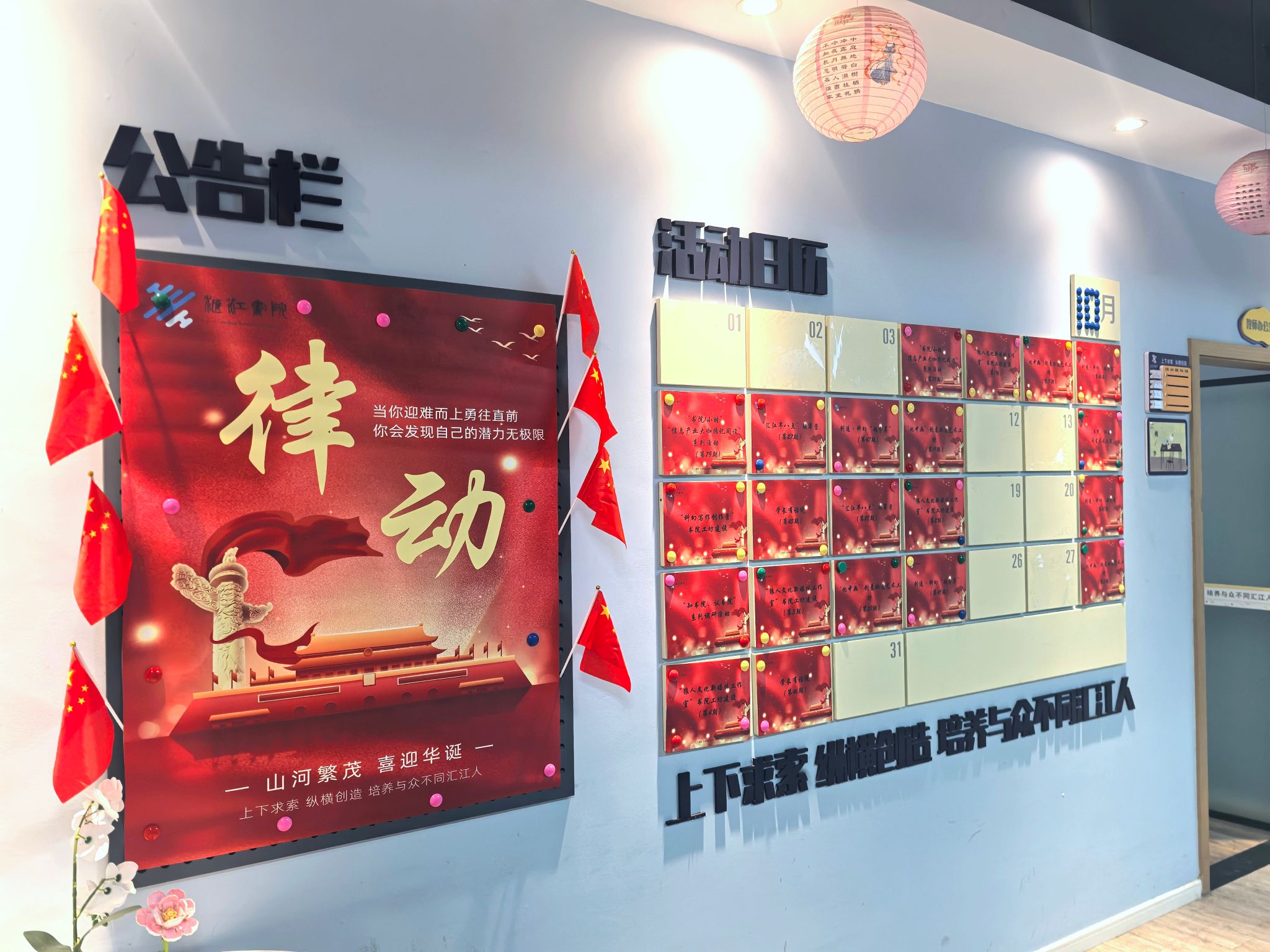 恰逢中华人民共和国成立75周年,别都书院以“奇十妙享,潮趣国庆”为主题进行书院空间氛围营造,为祖国母亲献上最诚挚的祝福。走进书院的各处空间,满院尽是“中国红”,国庆氛围“别样浓”,一面面飘扬的国旗表达着书院学子对祖国的热爱,展现对美好生活的向往。“文礼修身,耕读传家”,别都书院希望以浓烈的国庆氛围营造,让书院学子在丹桂飘香、家国同庆的美好节日里,感受祖国的繁荣昌盛,为祖国的明天而努力奋斗。