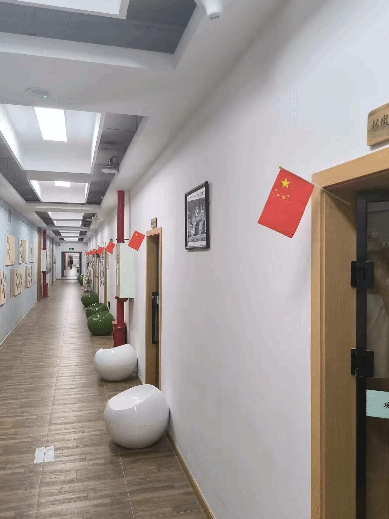 今年是中华人民共和国成立75周年,廊桥书院也迎来了一场特别的装点。为了迎接这一盛大的节日,营造浓厚的国庆节氛围,书院内挂上了小国旗,整个廊桥书院内都飘满了中国红。这些小国旗色彩鲜艳,象征着国家的繁荣昌盛和人民的幸福安康。它们在微风中轻轻摇曳,仿佛在向人们诉说着祖国的伟大历程和辉煌成就。