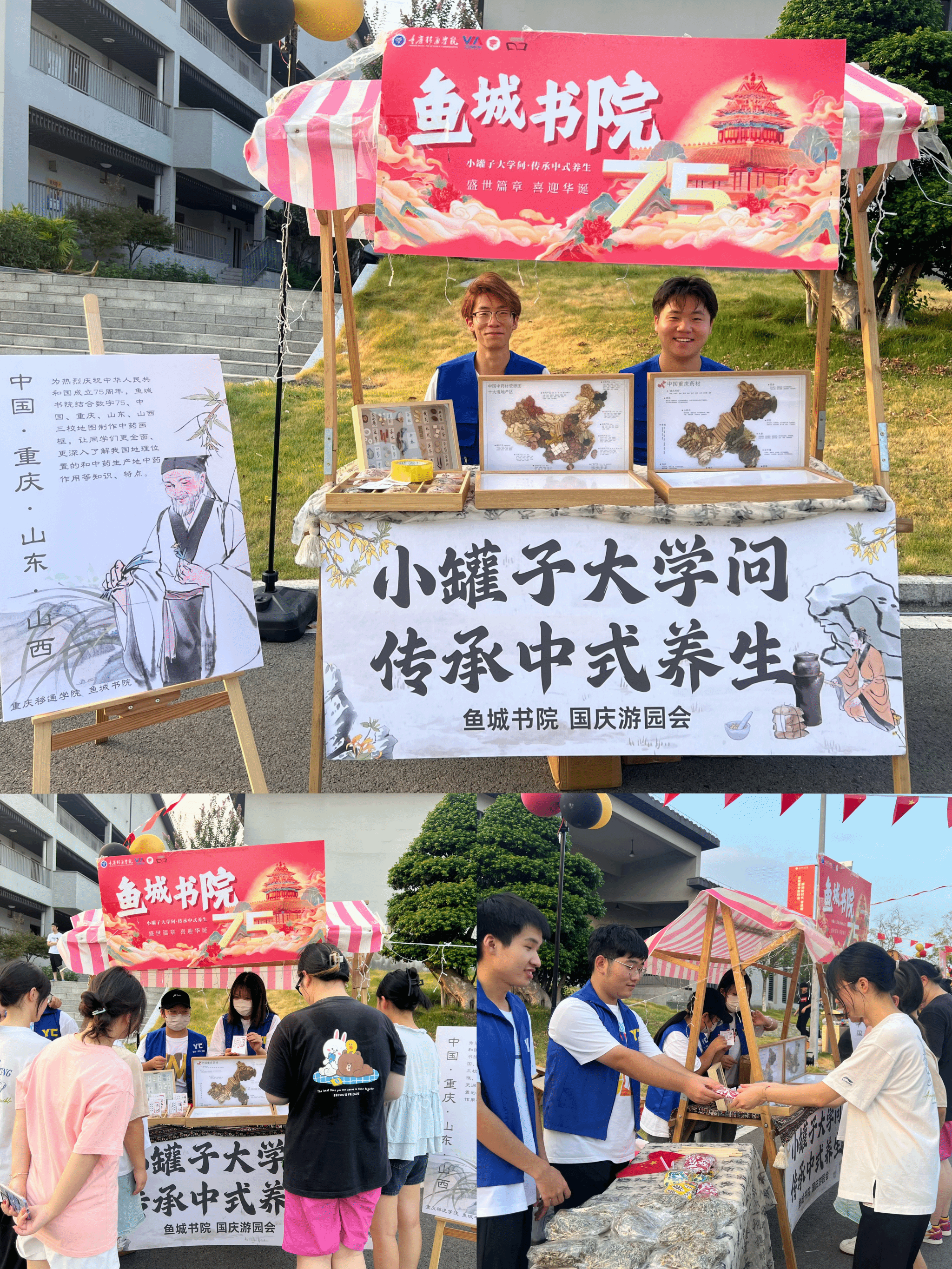 国庆期间,鱼城书院在书院入口处设置“我的国庆心愿清单”互动留言墙,来往的学生纷纷书写自己的国庆心愿与节日祝福,小情大爱跃然纸上,共同描绘笔触间的家,撇捺里的国,抒岁月芳华,庆山河锦绣。还携家文化精髓,弘扬祖国博大精深的传统医学文化,引领青春力量共赴一场中医药养生智慧的盛宴。创新性地融合了数字“75”周年的纪念意义,聚焦于重庆、山东、山西三地的地域特色与中药资源,通过精心设计的中药画框,每一笔都蕴含着对这片土地深沉的爱与敬意,不仅让同学们在创作中领略到我国丰富的地理知识,用药包Diy制作中药锤,深刻体会到中药生产地的独特魅力与中药的神奇疗效。站在新的历史起点上,鱼城书院与广大学子一道,继续传承和发扬中医药这一宝贵遗产,我们期待,通过此次活动,能够激发更多青年学子的创新精神和实践能力,共同书写中医药文化发展的新篇章,展现出中华民族未来的无限可能与辉煌前景。
