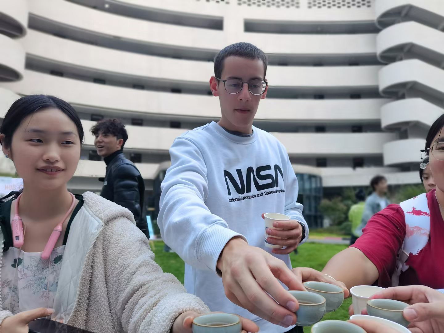 在轻松愉快的氛围中,同学们不仅增长了知识、拓宽了国际视野,更对“一带一路”倡议有了更加直观和深刻的理解。而在放眼寰宇之外,现场还设置了如射箭、投壶、茶道体验等丰富的互动环节,让同学们在了解世界的同时,也在互动中感受传统文化的魅力、感受大国自信的气韵。