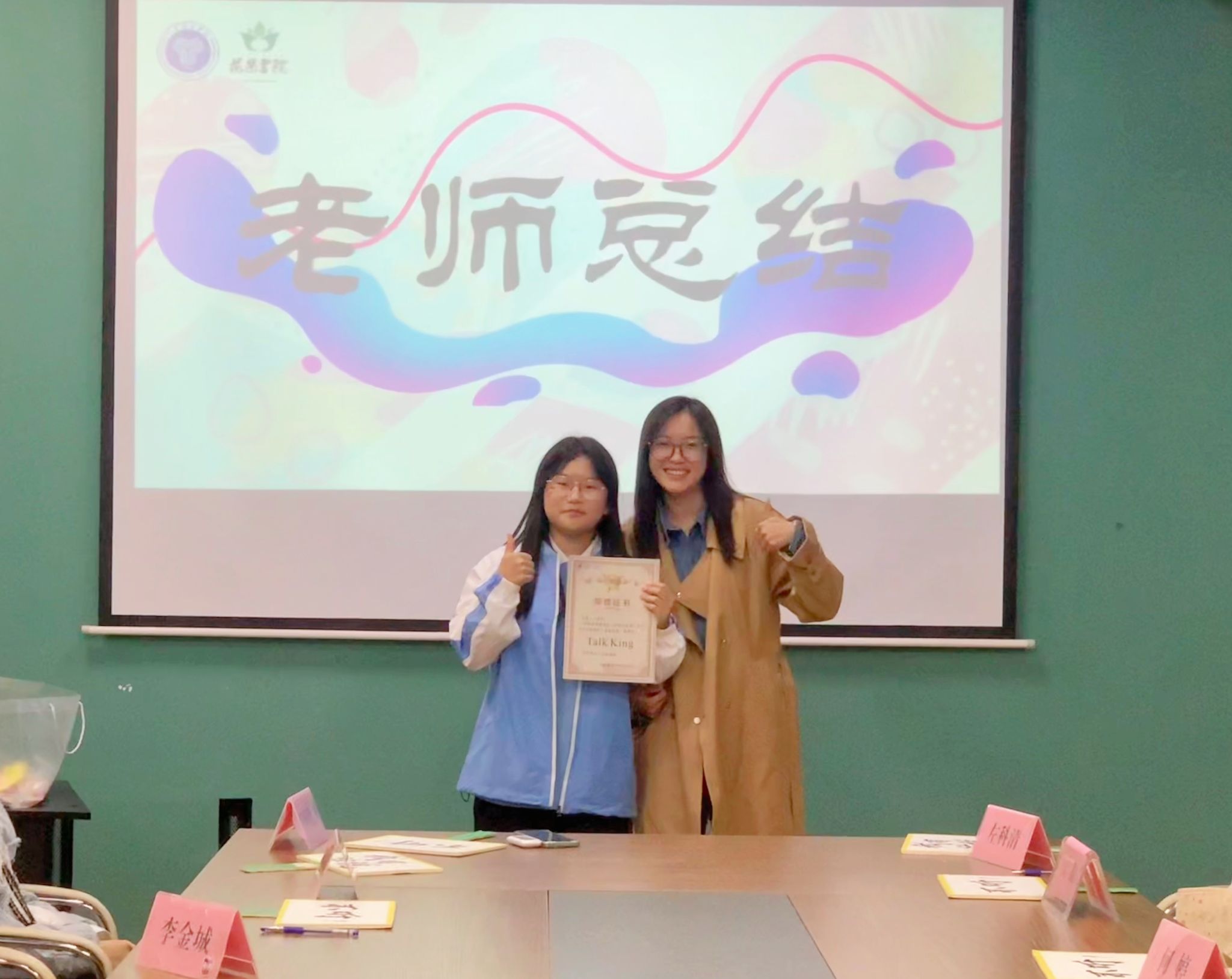 本期青年非正式会谈在同学们不绝于耳的讨论声中接近尾声,花果书院胡霁贤老师对同学们的分享与讨论进行了总结,鼓励同学们在今后的大学生活中以奥运健儿为榜样,勇敢面对各钟挑战,努力在移通实现自己的大学目标与青春价值。在本期青年非正式会谈中,沈翠同学凭借出色的表现荣获“Talk King”称号,通过本期青年非正式会谈也希望移通学子以奥运精神塑造积极心态、追求卓越人生,坚定地走在追寻热爱、实现梦想的道路上。