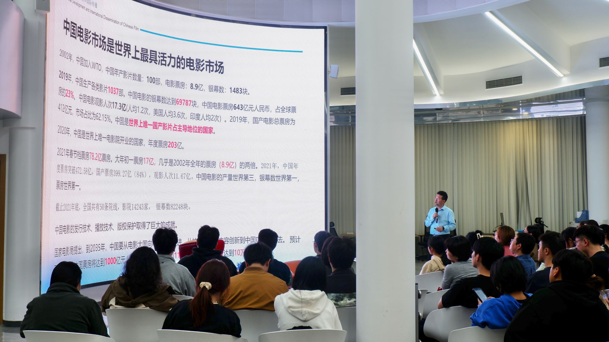 活动伊始,何老师深入浅出地剖析了中国电影文化与自信、产业发展的现状、国际传播策略以及对外译制中存在的问题。他指出,近年来中国电影产业蓬勃发展,不仅在国内市场取得可喜成绩,也开始在国际舞台上崭露头角。《流浪地球》的成功就是一个典型的例子,这部电影不仅在国内票房大卖,还在海外市场赢得了良好的口碑,标志着中国科幻电影的崛起。此外,电影《满江红》凭借其深刻的文化内涵和精湛的艺术表现力成为中国电影在海外传播的亮点。