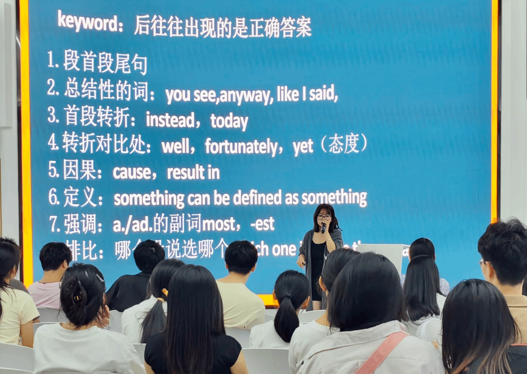 语言作为推开世界的大门,是高校学子共同面临的挑战,为了帮助大家顺利通过四六级英语等级考试,国际商学院陈佳奇老师分别从四六级考试概述、考试内容与结构、考试报名与时间、备考策略、考试成绩与证书、四六级考试影响这六个方面详细分享四六级备考经验和常用答题技巧。陈佳奇老师的分享让同学们对四六级考试有了更加全面和清晰的认识,也让同学们对备考四六级有了明确的规划和信心。