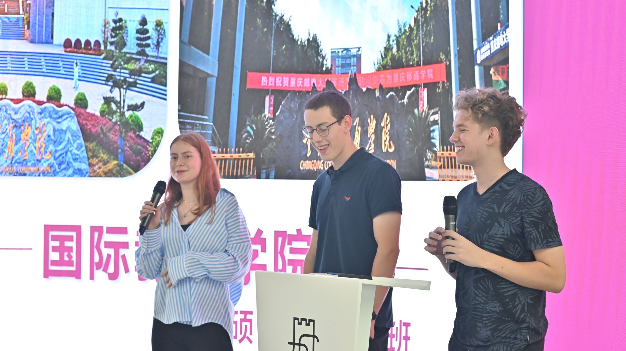 活动伊始,参与暑期德国游学的何娜娜、马婷两位学姐向大家分享她们的游学趣事。在两位学姐的分享中,我们了解到德国人强调食物新鲜和质量,注重传统烹饪方法的美食文化,感受德国啤酒文化的悠久历史和各式酿制方法。思考德国全民阅读背后的行为习惯养成,共赏梵高画展的绮丽张驰。两位学姐表示感谢学校国际交流项目的大力支持,让移通学子能够在充分的资源保障中拓宽国际视野,培养跨文化的素养。来自德国的三位留学生也热情地给大家分享他们在我校收获的温暖关怀,不仅让大家对学校的国际化发展有了新的认识,也在留学生分享中感受国内外思维方式和语言表达的不同。