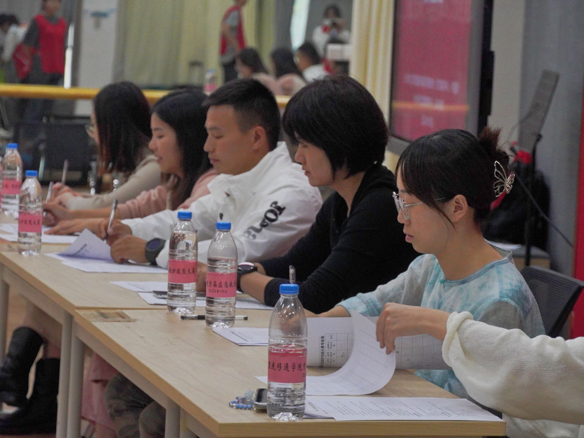 比赛随即于南湖书院排练厅内分批次有序进行。此次大赛共设有三个技能比赛环节:一个必考项目、一个任选项目和一个随机提问项目。经过随机分组后,选手们依次有序登场,展现出扎实的实操技能和良好的心理素质。