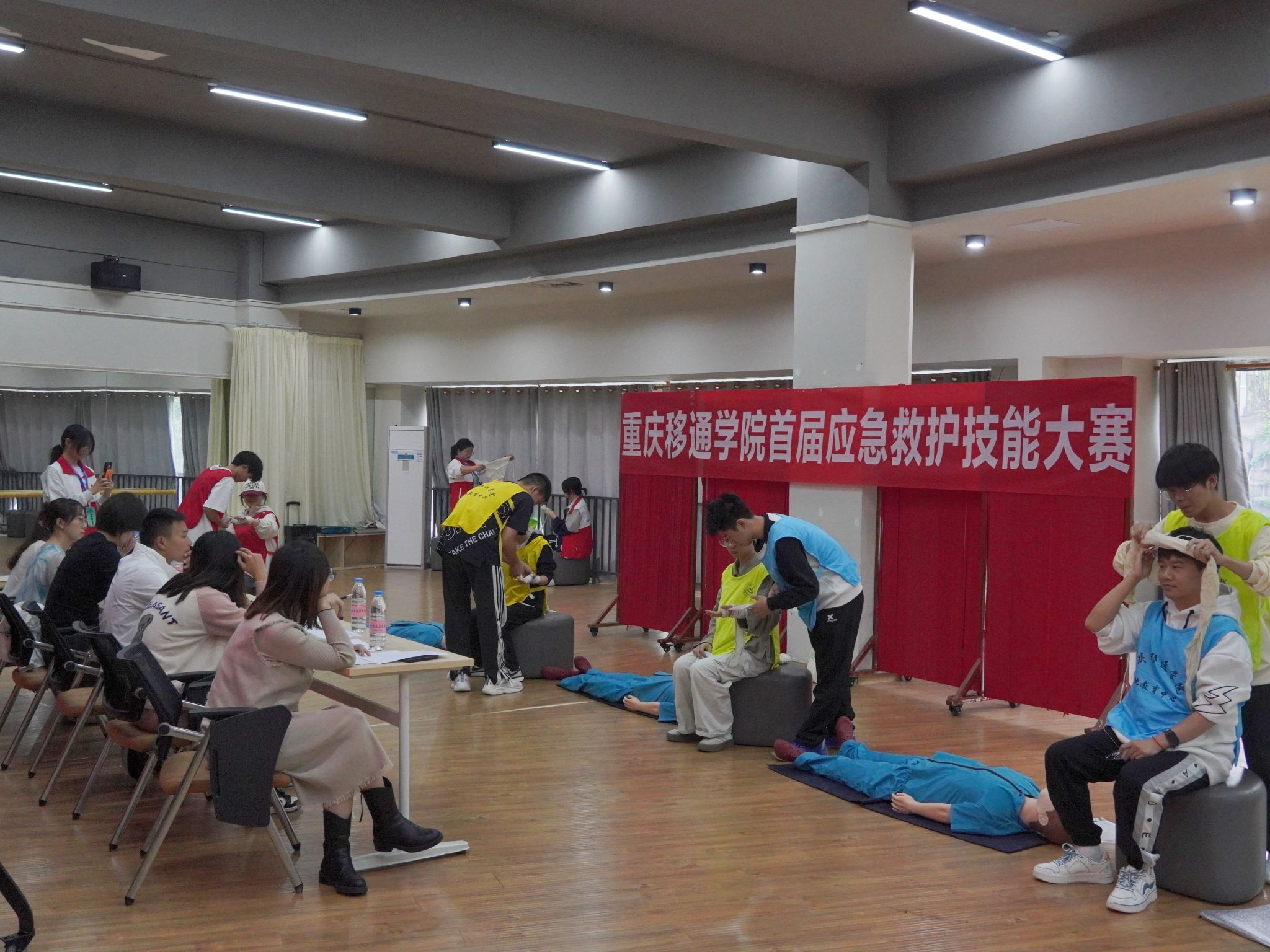 为深入贯彻落实习近平总书记关于健康中国的重要论述,牢固树立“人民至上、生命至上”的理念,提高全校师生关爱生命意识和自救互救能力,进一步做好校园安全及预防工作,10月18日下午,由校团委、竞技体育中心、书院部主办,营地教育中心、南湖书院承办的重庆移通学院首届应急救护技能大赛暨重庆市大学生应急救护大赛校内选拔赛在南湖书院成功举办。