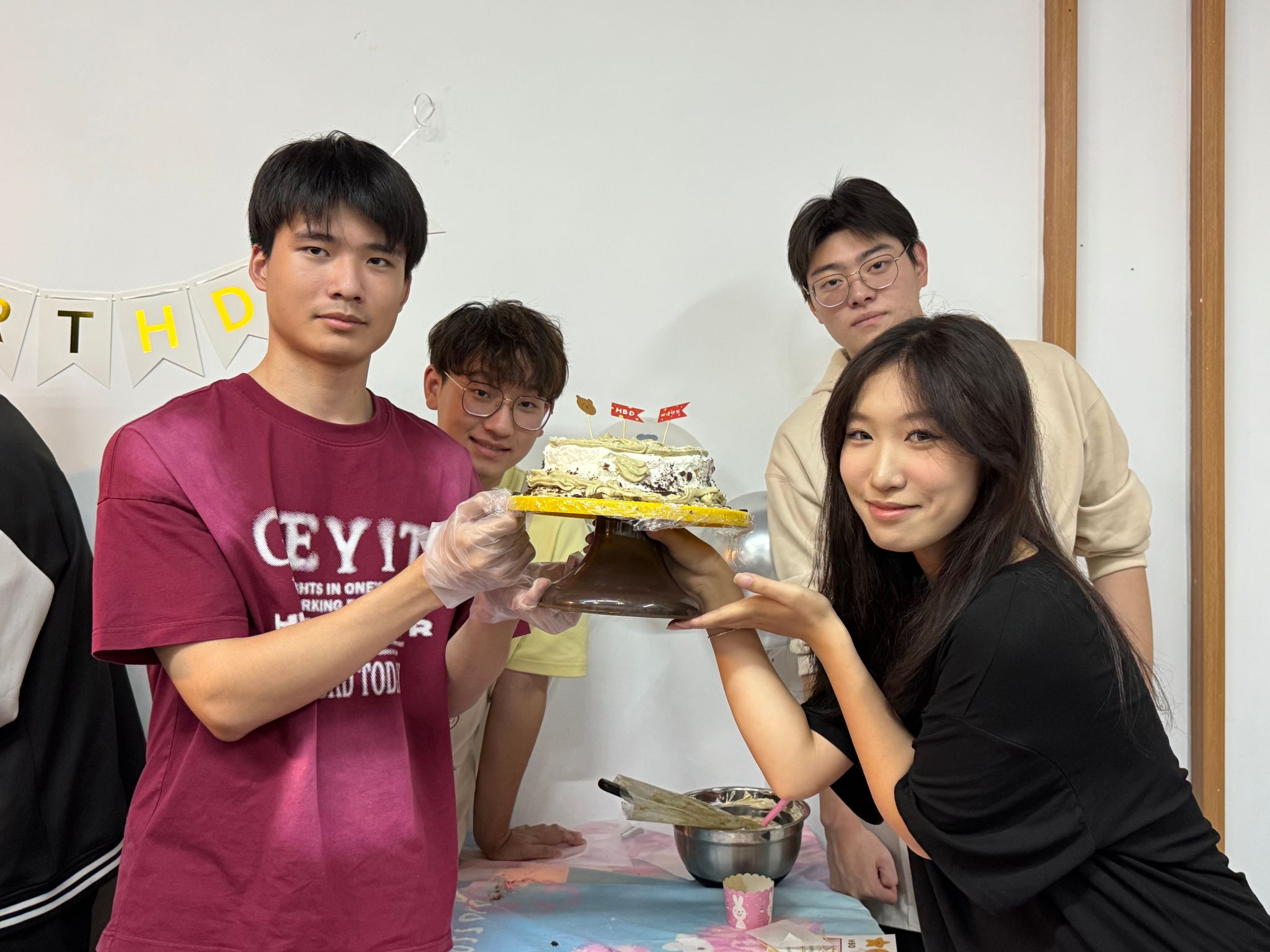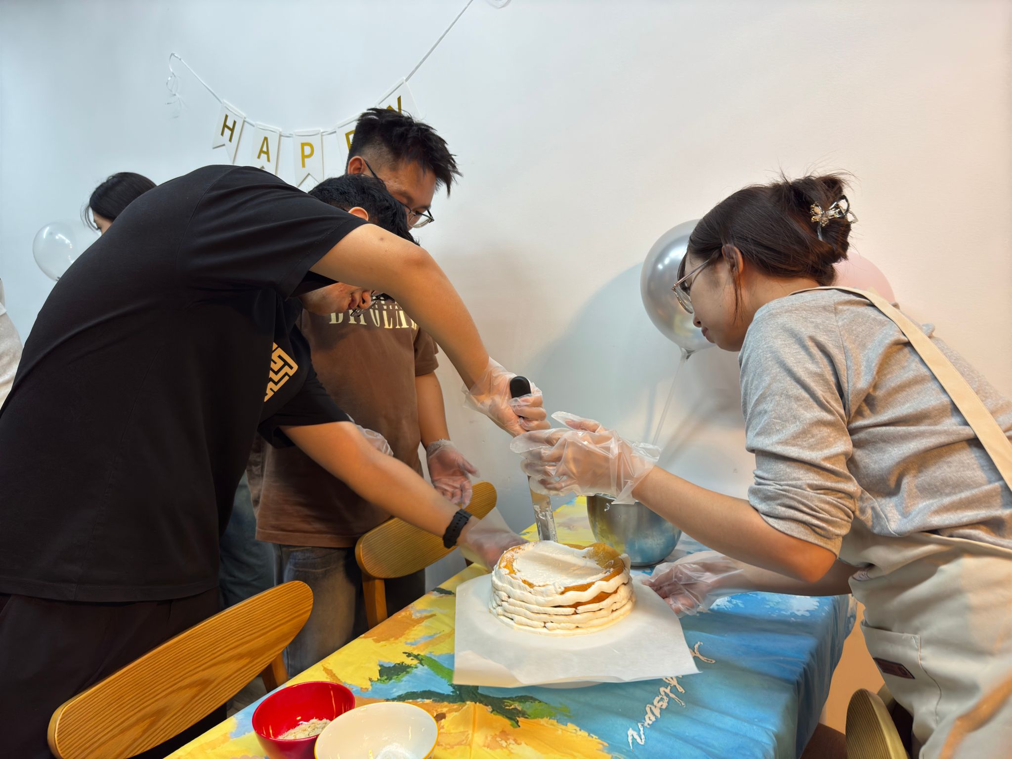 紧接着,千禾烘焙坊的工作人员现场教学,指导大家如何给蛋糕上奶油、如何装饰蛋糕。寿星们和室友们纷纷动手,发挥自己的创意和想象力,共同制作出一个个精美的生日蛋糕。在制作过程中,大家携手合作,这一过程不仅锻炼了大家的动手能力,更在廊桥书院内营造了一种温馨如家的氛围。同时,室友间的情感交流与互动得到了深化,进一步促进了彼此之间的理解和友谊。